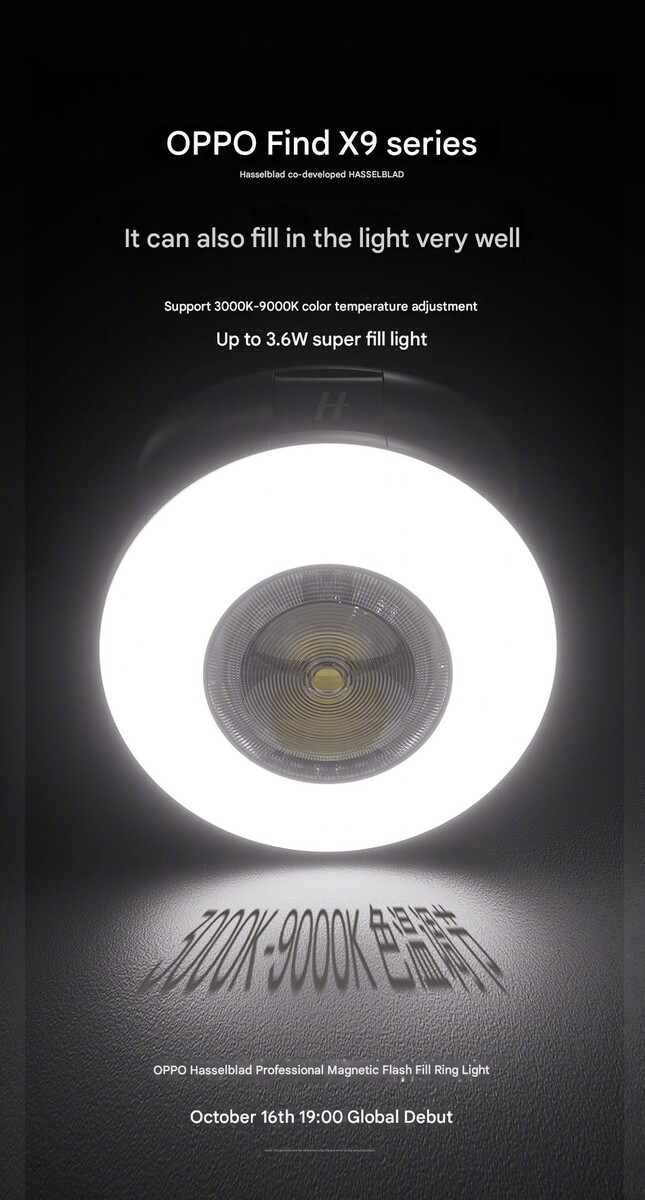 Кроме того, Oppo показала магнитный аксессуар заполняющего света для серии Find X9. Он обещает освещать сцены с яркостью до 2 200 люкс, и Oppo подчеркивает, что пользователи могут регулировать цветовую температуру в диапазоне от 3 000 до 9 000 Кельвинов. Этот аксессуар также должен работать с OnePlus 15 и некоторыми моделями iPhone (силиконовый чехол для iPhone 17 Pro MagSafe стоит 37 долларов на Amazon).