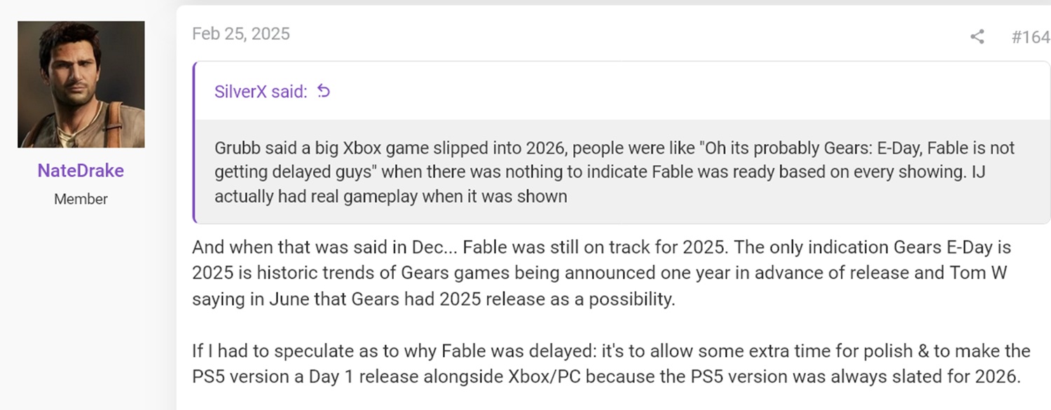 После сообщения о VGC и новости о том, что Fable станет хедлайнером предстоящего мероприятия Xbox, он повторил свои предыдущие комментарии. Невозмутимый NateTheHate2 сказал на Reddit"Неизвестно только, будет ли игра выпущена на PS5 одновременно с релизом на Xbox"