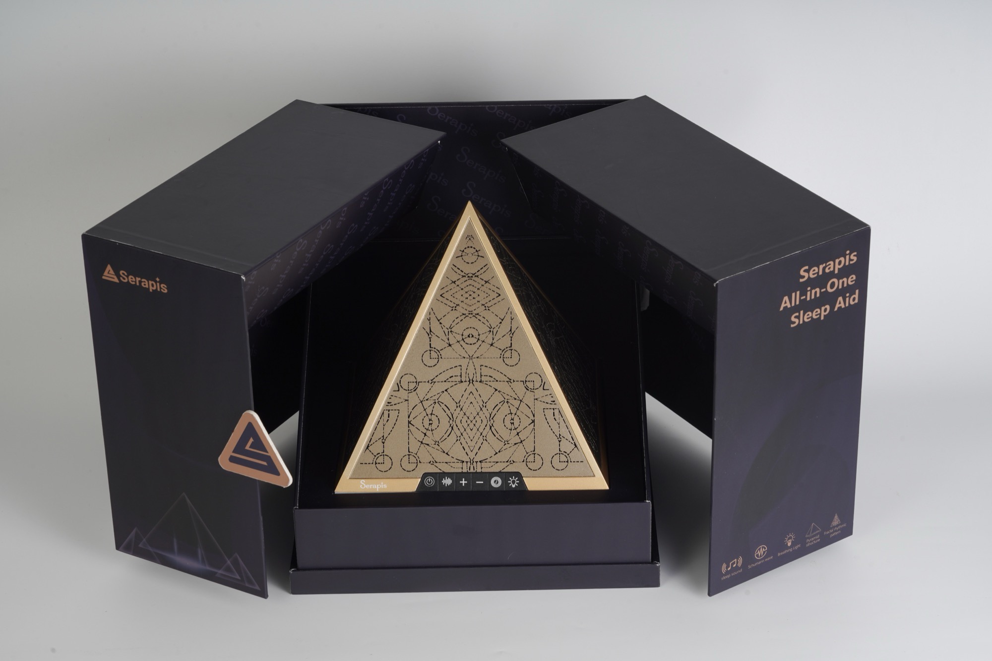 Смарт-часы и умные кольца могут измерять качество сна, но они мало помогают Вам заснуть. Именно здесь на помощь приходит Serapis - гаджет в форме пирамиды, который размещается на Вашем прикроватном столике и призван помочь справиться с целым рядом проблем со сном.