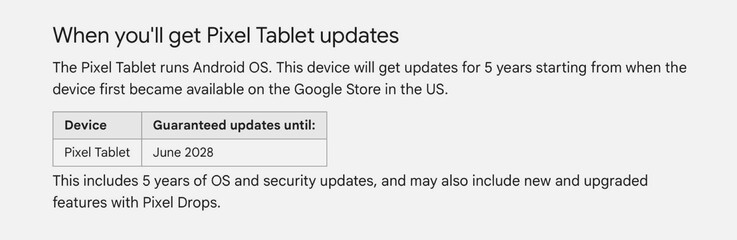 Планшет Google Pixel вышел на рынок в июне 2023 года с Android 13. Изначально Google обещал только три основных обновления Android и обновление функций до июня 2026 года, хотя планшет Pixel должен был получать исправления безопасности в течение пяти лет. Теперь Google подтвердил на своем сайте поддержки https://support.google.com/googlepixeltablet/answer/13399216?hl=en что планшет Pixel все-таки будет получать обновления операционной системы в течение пяти лет.