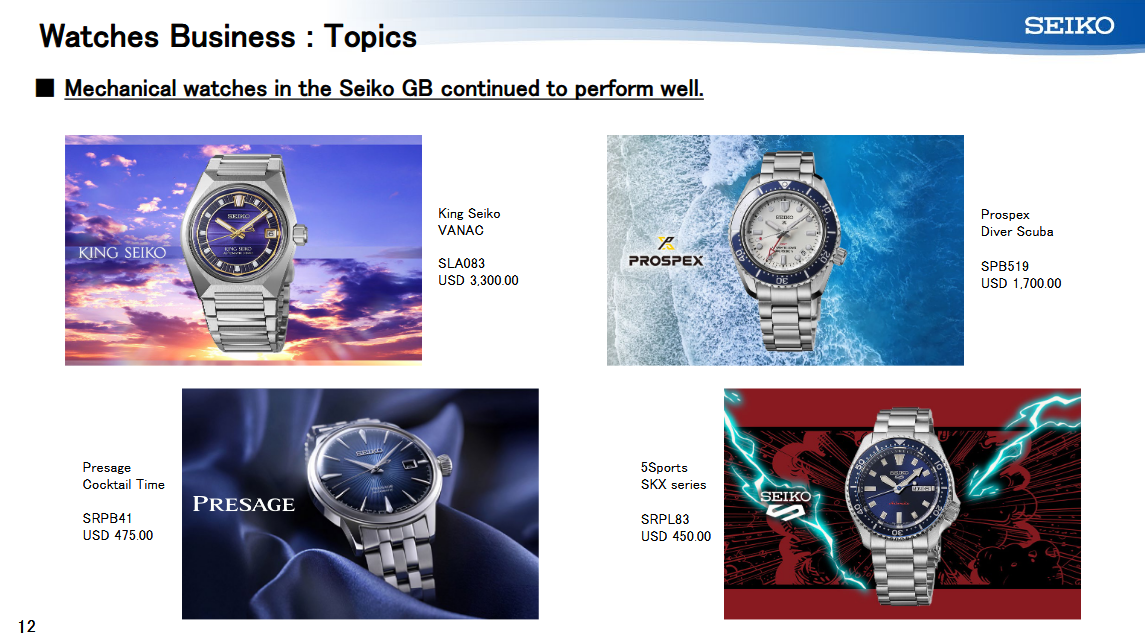 Несколько недавних достижений несколько недавних достижений свидетельствуют о том, что стратегия Seiko работает до сих пор: