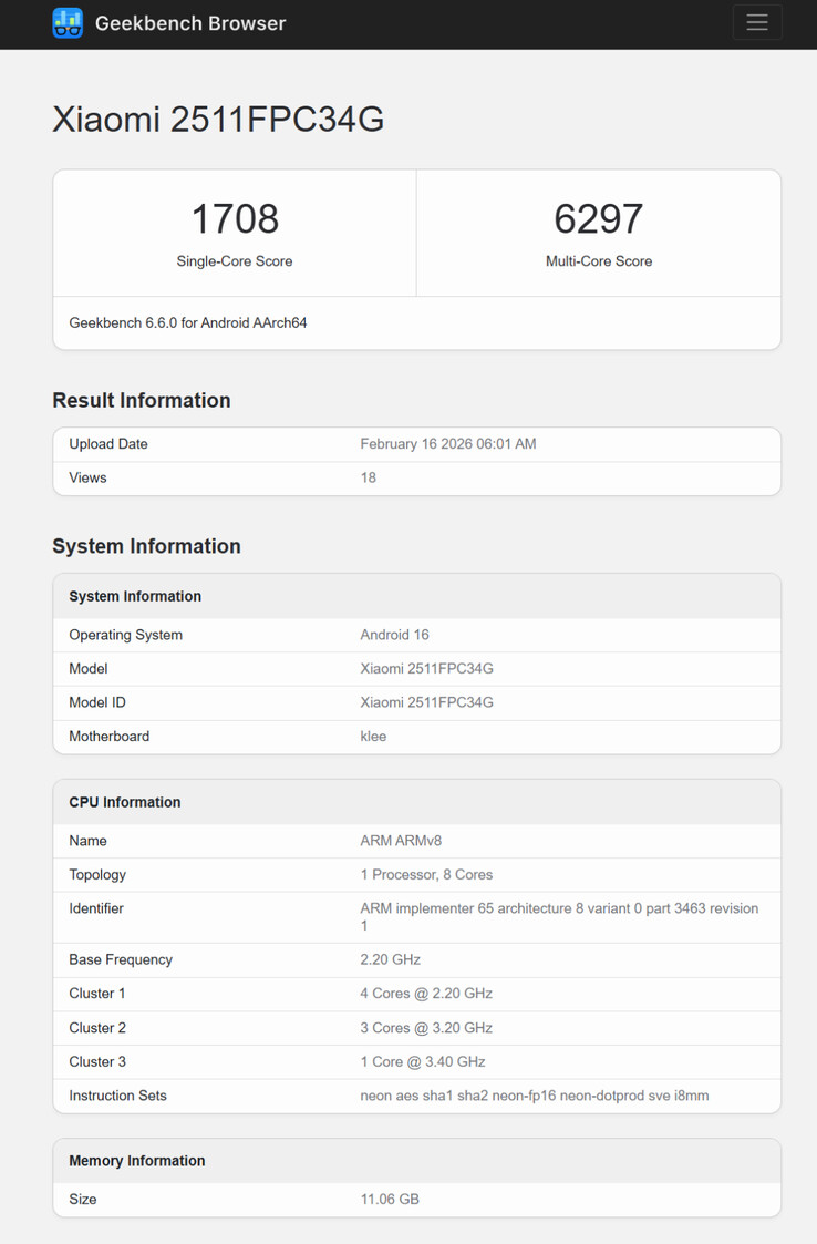 Вместо этого во всех листингах Geekbench упоминается 2511FPC34G - номер модели, суффикс G которого обозначает глобальный релиз. Учитывая предыдущие утечки, устройство, представленное в бенчмарке, скорее всего, Poco X8 Pro, а не Poco X8 Pro Max, о котором ходят слухи. Кроме того, Geekbench определяет, что 2511FPC34G оснащен чипсетом серии Dimensity 8500, а не Dimensity 9500s на котором, по слухам, основан Poco X8 Pro Max.