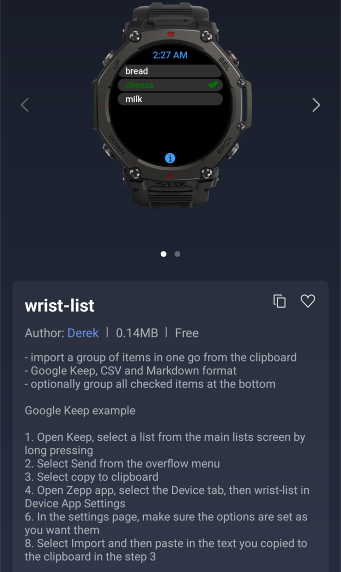 Среди новинок - wrist-list, приложение для составления контрольных списков, поддерживающее импорт списков в таких форматах, как Google Keep, CSV и Markdown. Sound Generator - это утилита, которая может генерировать чистые синусоидальные тона. Вы можете использовать его для тестирования аудиооборудования или для очистки динамиков смарт-часов от воды. Еще одно дополнение - AlarmZone, которое "гарантирует, что Вы действительно встанете с постели". Интерактивное приложение-будильник требует от пользователей совершить какое-либо действие, например, встряхнуть часы или решить математическую задачу, чтобы остановить сигнал.