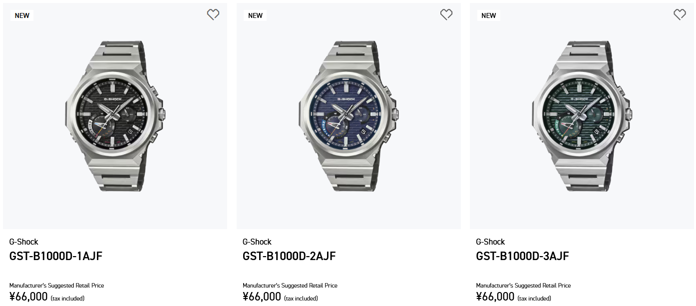 Casio официально разместила информацию о своей новой серии G-Steel GST-B1000 на японском сайте, подтвердив то, о чем уже несколько месяцев говорили прошлые утечки и объявления розничных продавцов. В этом листинге подтверждены сроки запуска, детали модели и цены для всех трех основных вариантов: GST-B1000D-1AJF (черный циферблат), GST-B1000D-2AJF (синий циферблат), и GST-B1000D-3AJF (зеленый циферблат).
