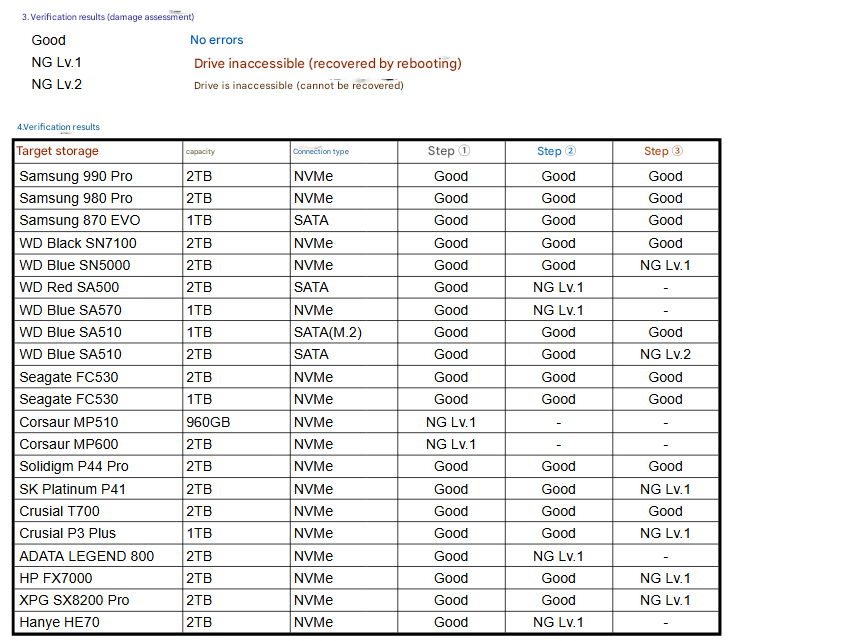 Согласно списку, похоже, что этой проблеме подвержены не только диски с контроллерами Phison, поскольку в него входят и такие диски, как SanDisk Extreme Pro. Пользователь X @Necoru_cat позже сообщил, что некоторые SSD могут стать недоступными после возникновения проблемы, но восстанавливаются после перезагрузки. К таким дискам относятся: