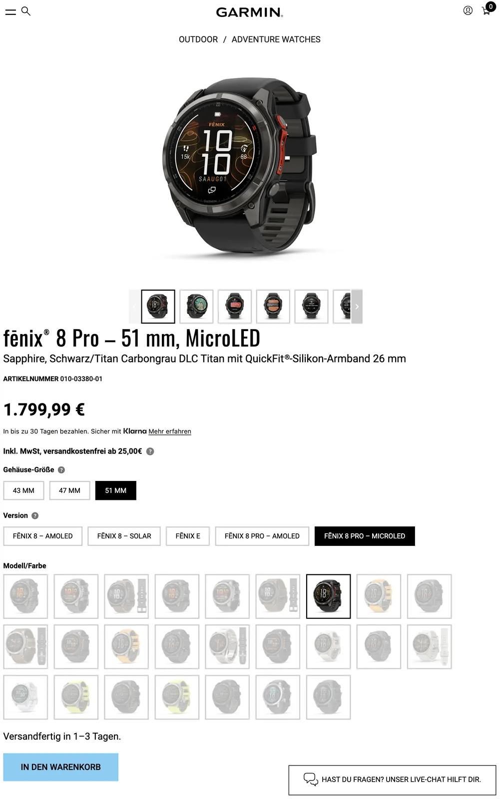 Прошел месяц, и компания молча снизила цену на свои единственные MicroLED smartwatch и в Европе. Например, теперь Garmin продает Fenix 8 Pro в Еврозоне за 1 799 евро, а не за 2 099 евро, которые были установлены с момента запуска устройства в сентябре прошлого года. В результате версия с MicroLED-дисплеем продается на 500 евро дороже, чем ее аналог с AMOLED-дисплеем (сейчас 1 199,99 долларов на Amazon).
