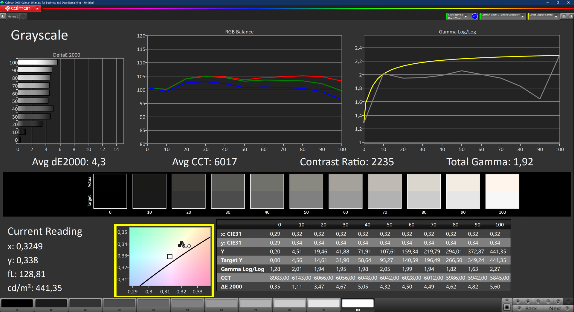 ΔE Greyscale Calman: 4.3 | ∀{0.09-98 Ø5}