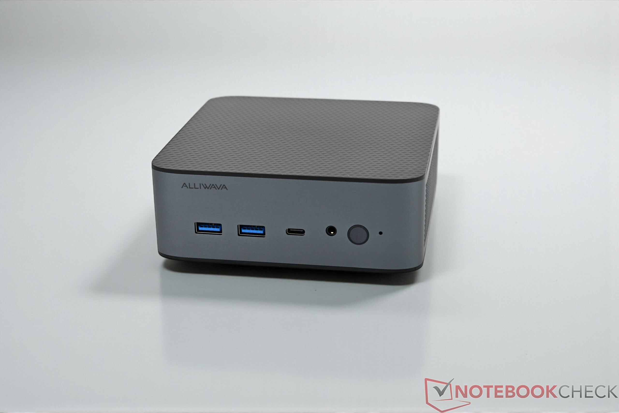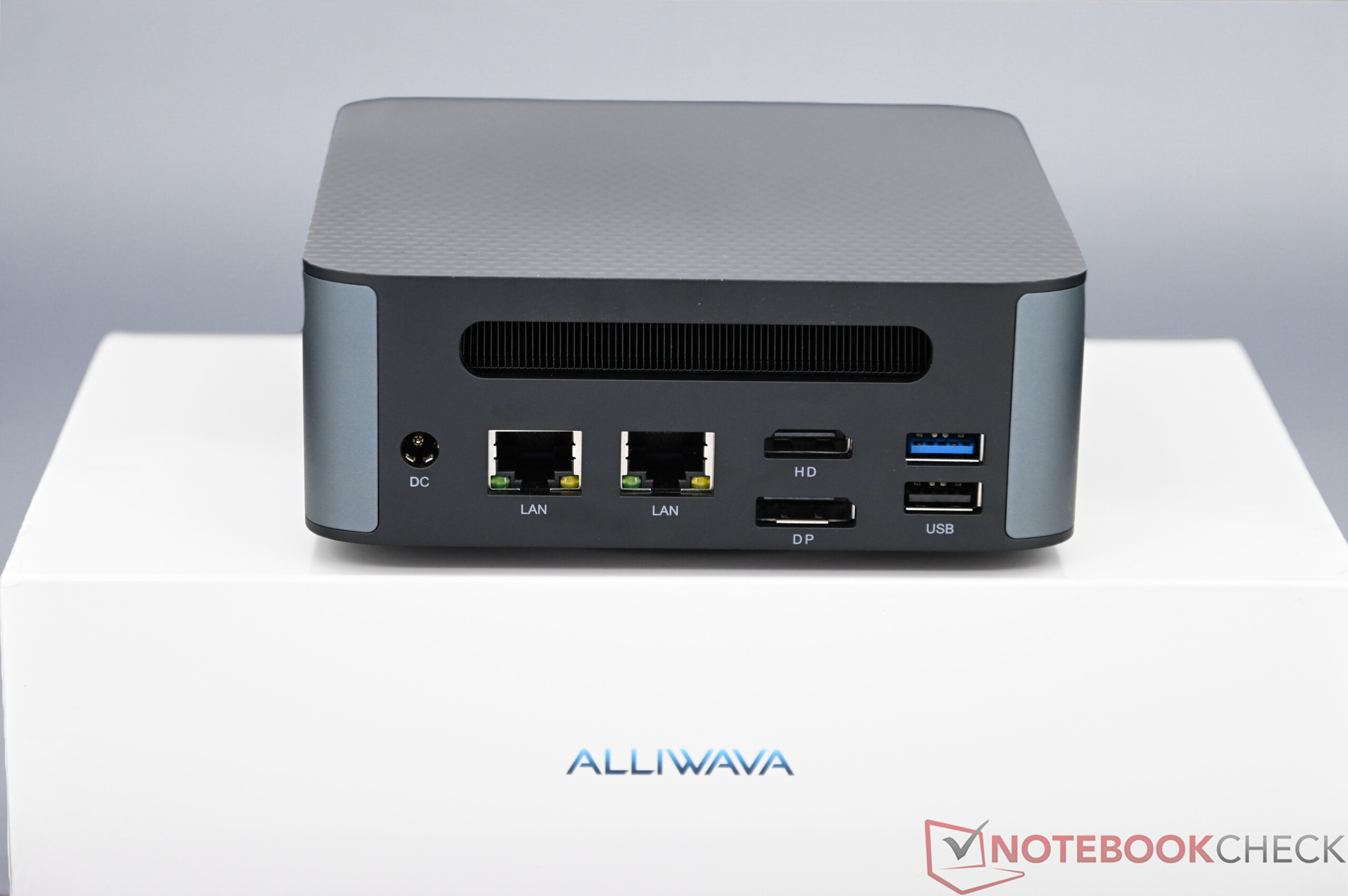 Alliwava H90 Pro поставляется в высококачественном алюминиевом корпусе, имеет компактные размеры и вес около 500 грамм. В то время как основание выполнено из алюминия, крышка корпуса и нижняя часть сделаны из пластика, что почти не умаляет общего впечатления солидности и качества. Разъемы разумно распределены по передней и задней панелям и предлагают хороший выбор для повседневного использования в офисе или дома. Однако от современных интерфейсов, таких как USB4 или OCuLink, придется отказаться. Тем не менее, Alliwava H90 Pro может управлять до трех дисплеев одновременно. Сетевое оснащение с двумя 2,5-гигабитными портами LAN и быстрая сеть WLAN также являются одними из сильных сторон этого компактного мини-ПК с Дальнего Востока.