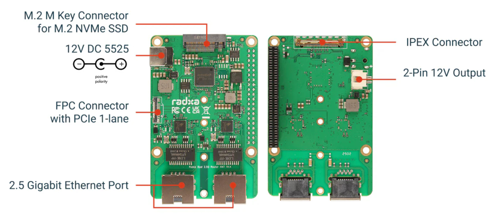 Теперь компания выпустила дополнительную плату, призванную расширить универсальность самого Raspberry Pi 5. Как следует из названия, Dual 2.5G Router HAT предоставляет пару портов 2,5 Gigabit Ethernet на Raspberry Pi 5 через 40-контактный GPIO-заголовок SBC. Для справки, эти порты используют контроллер Realtek RTL8125B, а не аналоги от MediaTek или Intel.
