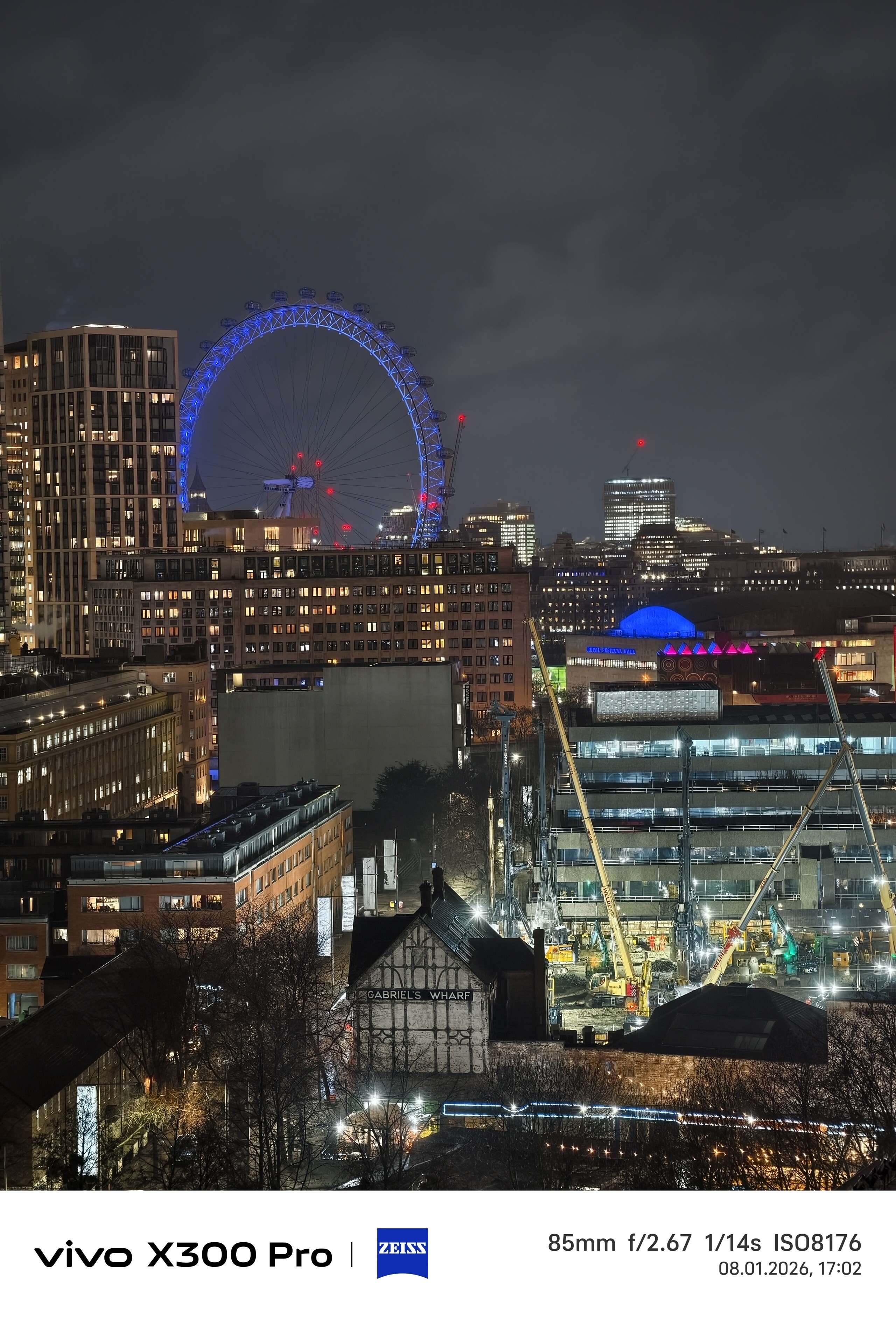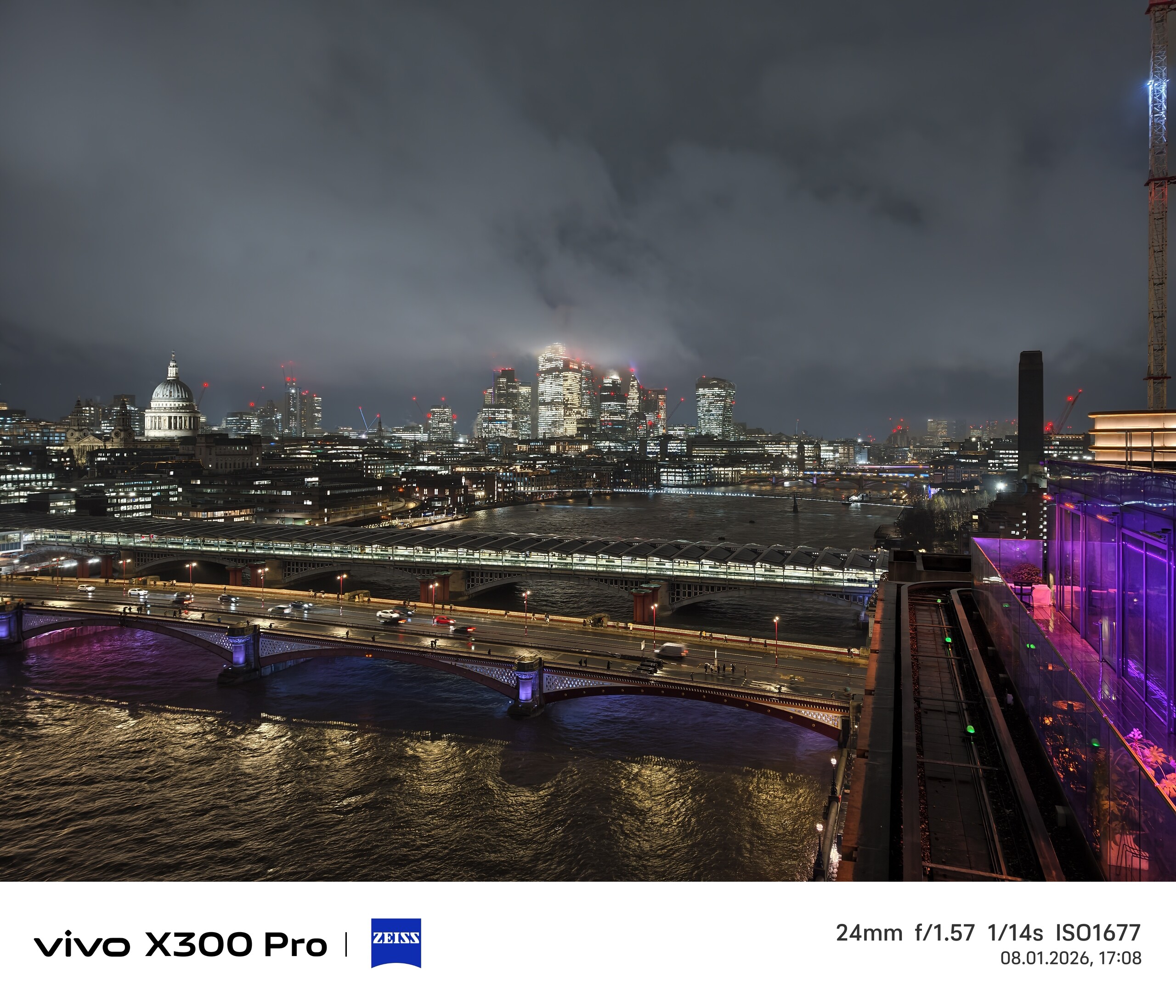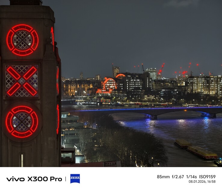 Ночью Vivo X300 Pro выигрывает за счет более светочувствительного оборудования и обеспечивает лучшее качество изображения, что особенно заметно на мелких деталях, таких как деревья на берегу (1-е изображение) или перила моста (2-е изображение).