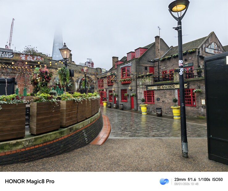 Погода в Лондоне была пасмурной, и X300 Pro снимает немного лучше, поскольку изображения в целом не так сильно осветлены. Тем не менее, мы бы предпочли, чтобы изображение было немного светлее. Honor использует противоположный подход и значительно осветляет изображение по всему периметру, чтобы создать впечатление большего динамического диапазона. Здесь мы бы предпочли немного более темный снимок. К сожалению, коррекция экспозиции на обоих смартфонах может быть настроена только в режиме Pro, и даже это не сохраняется надолго.