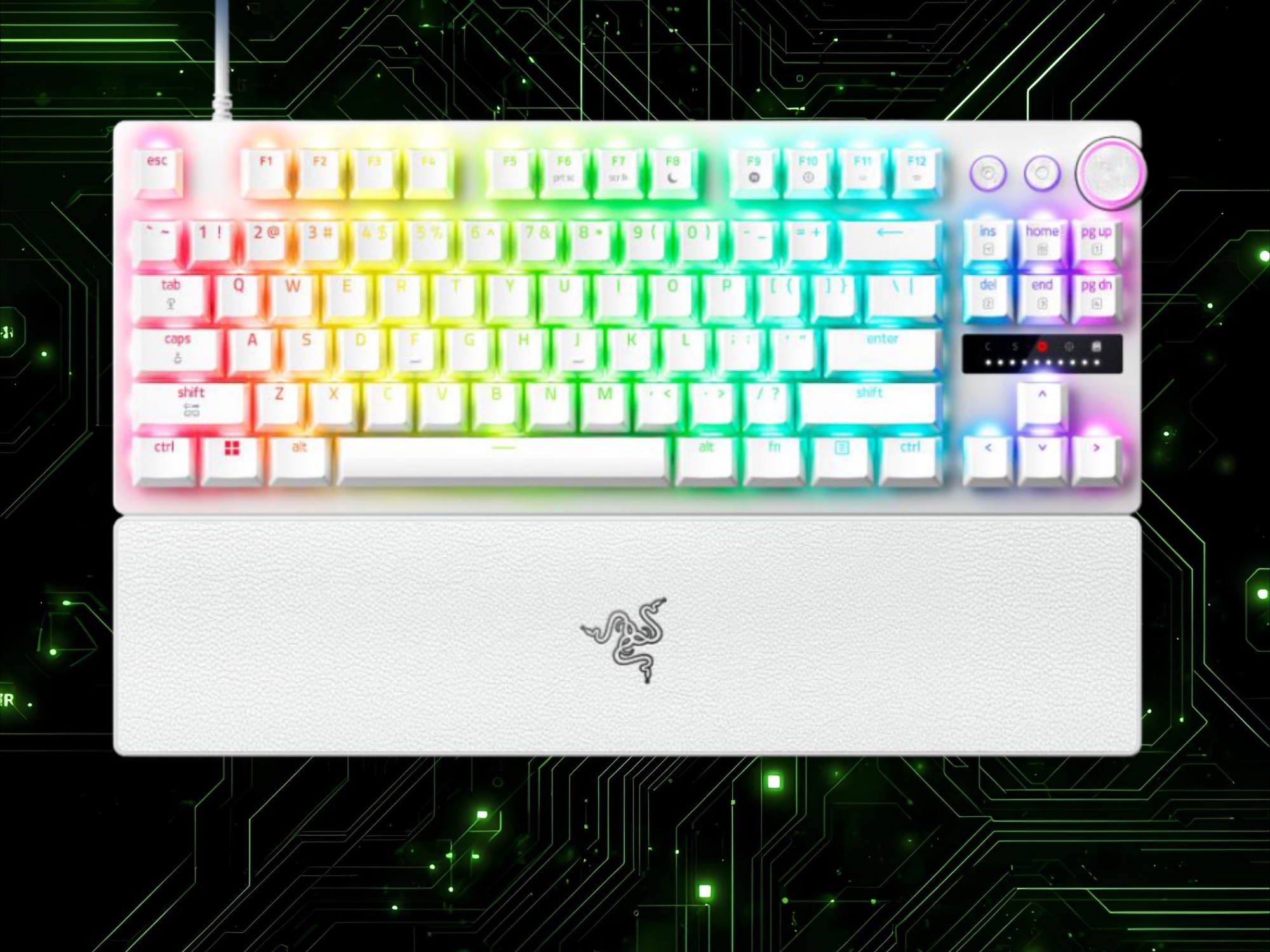 Практическое тестирование модели TKL подтвердило, что она реагирует на прикосновение пера. Однако благодаря диапазону срабатывания от 0,1 мм до 4 мм, более высокие настройки делают ее более практичной для задач, связанных с производительностью. Геймеры могут настроить и другие опции, например Snap Tap и Rapid Trigger, без необходимости Synapse 4. На правой стороне проводной клавиатуры расположены переназначаемые элементы управления мультимедиа и несколько светодиодных индикаторов.