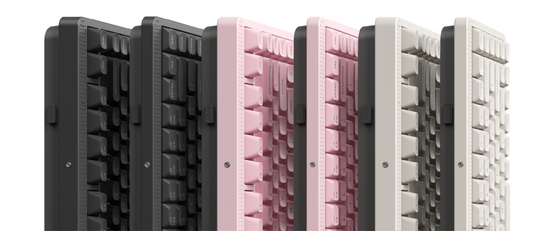 Эстетика NuPhy Node75 одновременно чиста и навеяна ретро: сенсорная панель в верхней части клавиатуры имеет сетку из точек, а вся клавиатура выполнена в бежевом, розовом и угольно-серых цветах. Профили NuPhy nSA и mSA также добавляют ретро-стиля, благодаря своему сходству с классическими профилями SA, встречающимися на старых клавиатурах Apple и IBM.