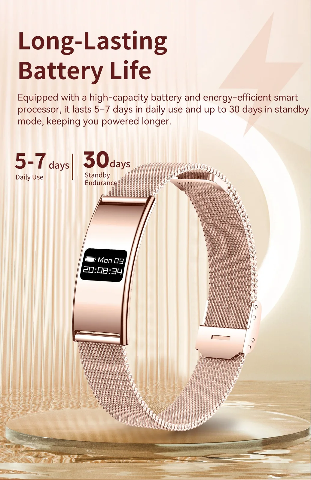 Тонкие металлические смарт-браслеты становятся все более важными для того, как они выглядят на запястье, а не для того, сколько функций они могут в себя вместить. Рогбид'новый браслет Vogue как раз вписывается в это пространство. Он рекламируется как украшение на каждый день, которое также отслеживает состояние Вашего здоровья. Компания утверждает, что его толщина составляет 2,8 мм, что делает его самым тонким в мире смарт-браслетом для здоровья.