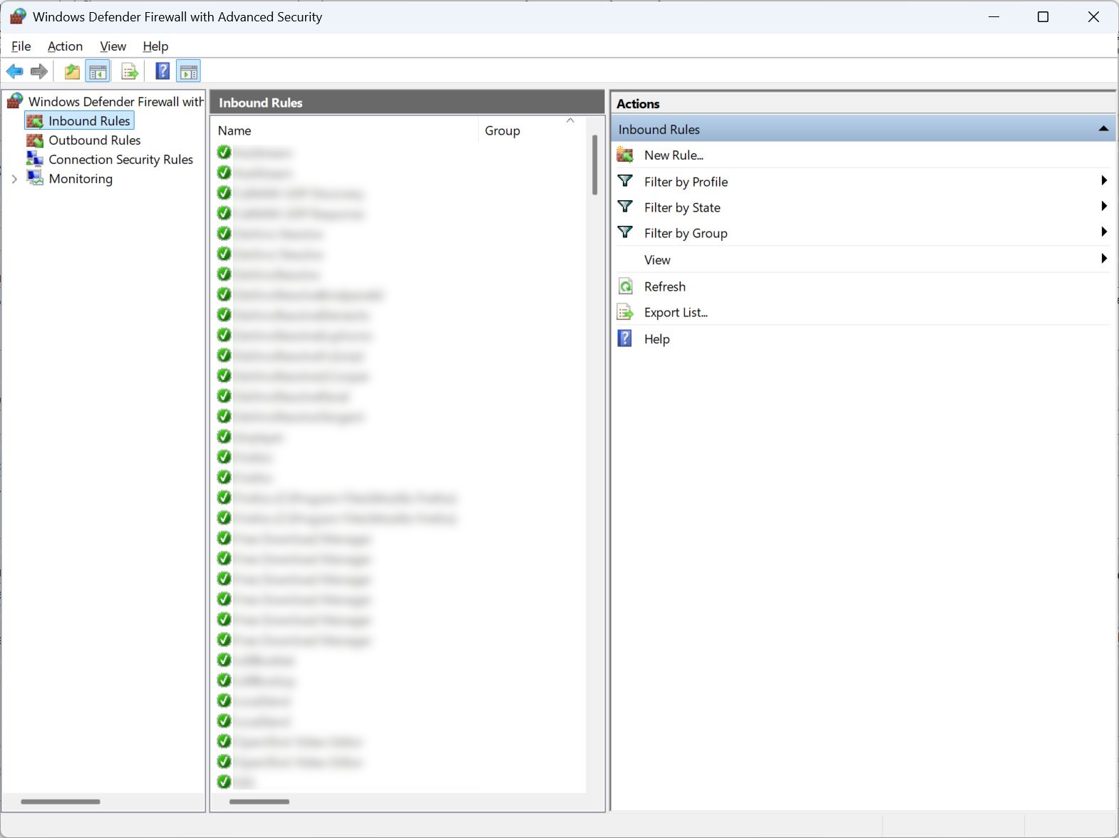 Далее введите "Firewall" в Поиск Windows и откройте "Брандмауэр Windows Defender с расширенной безопасностью". Вам нужно будет создать два правила - одно входящее и одно исходящее. Чтобы создать входящее правило: