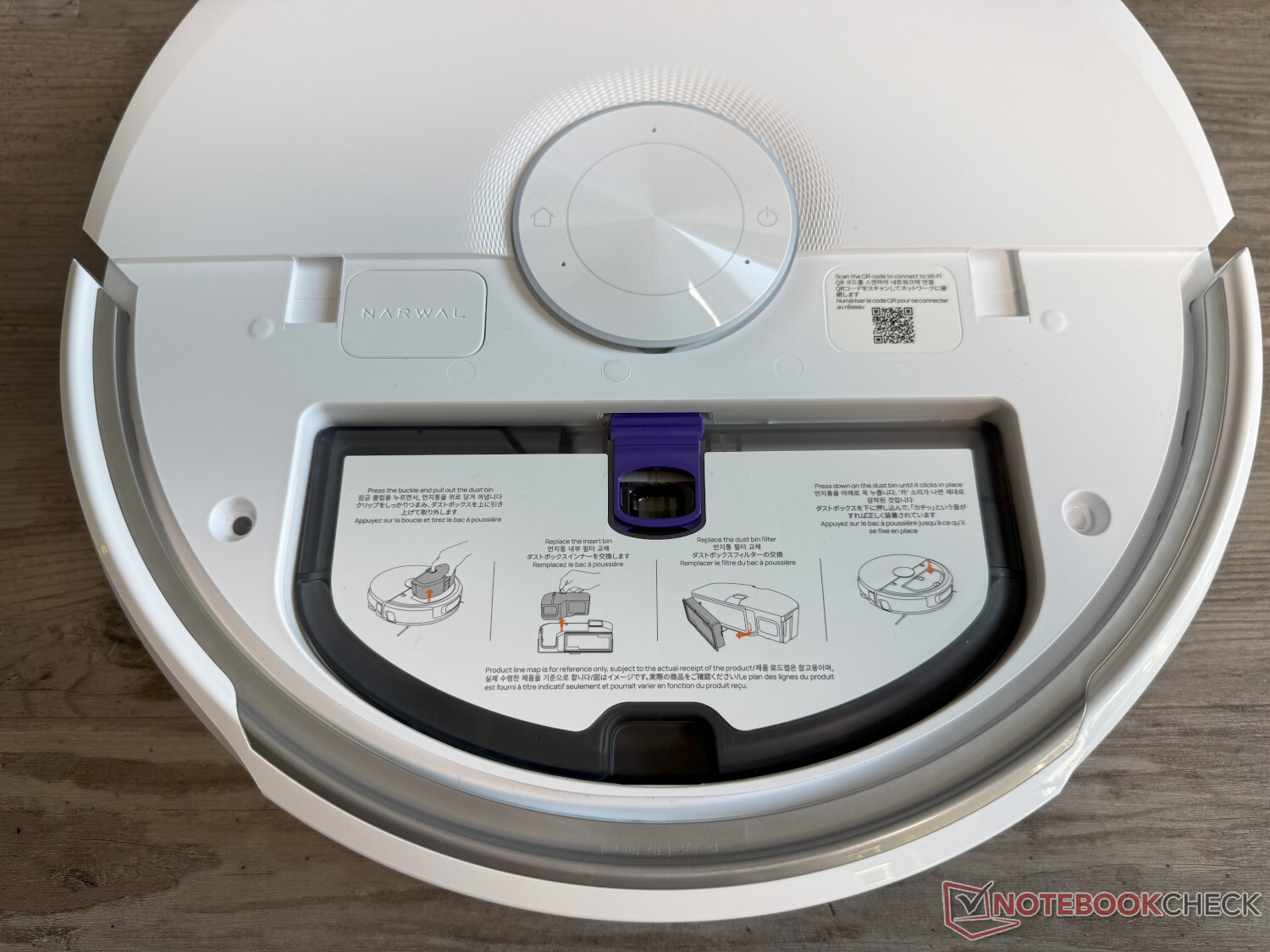 Входящая в комплект станция для уборки больше не имеет встроенного дисплея, как это было раньше в моделях Narwal Freo. Однако есть встроенная кнопка для непосредственного запуска робота. Помимо уборки пыли в течение 120 дней (по заявлению производителя), станция предлагает AI-адаптивную уборку горячей водой с температурой 60°C. Затем следует сушка горячим воздухом при температуре 45°C. Станция также оснащена функцией самоочистки горячей водой и сменным очищающим фильтром. Моющее средство можно наливать непосредственно в резервуар для воды, что несколько менее удобно.
