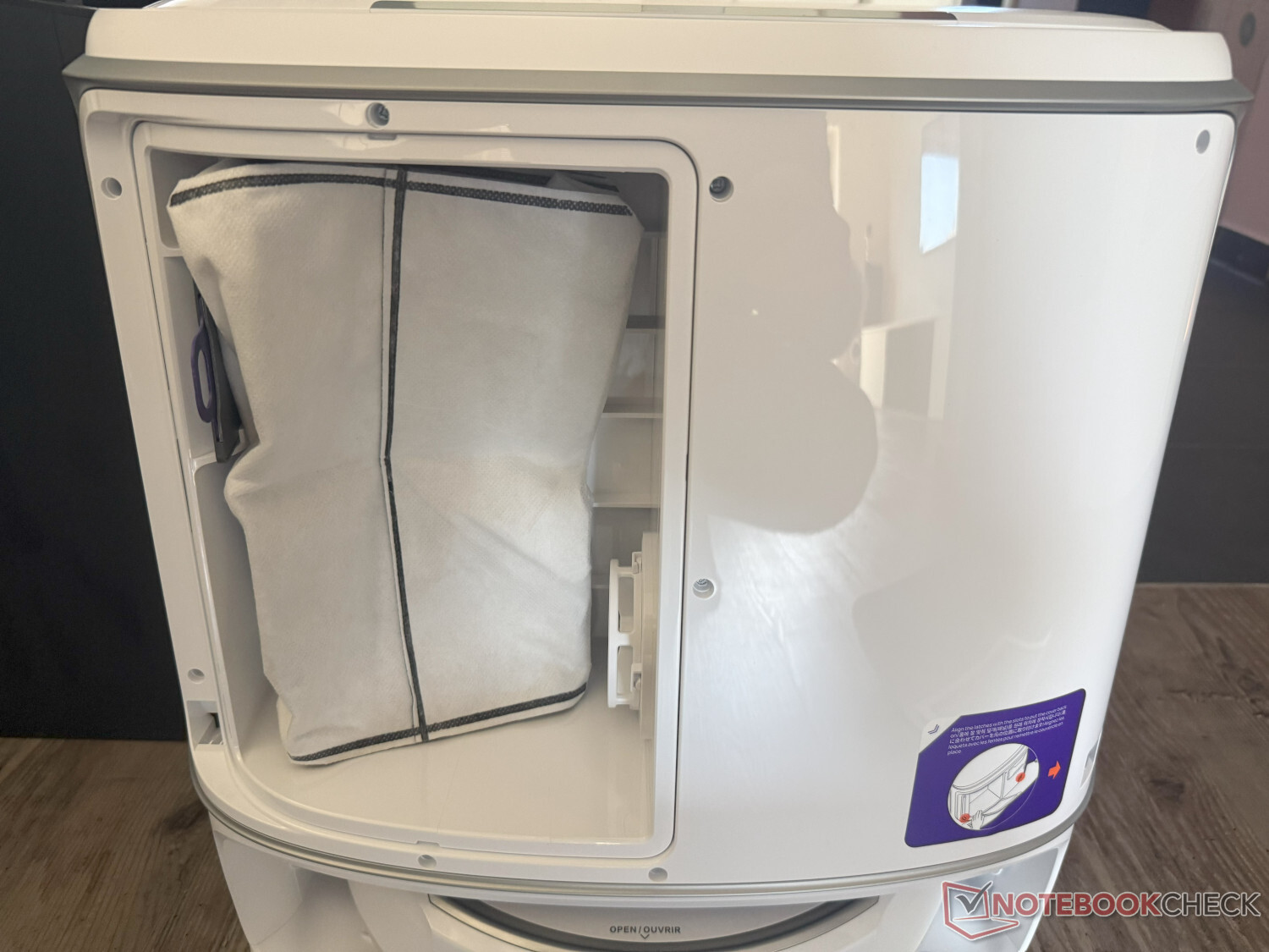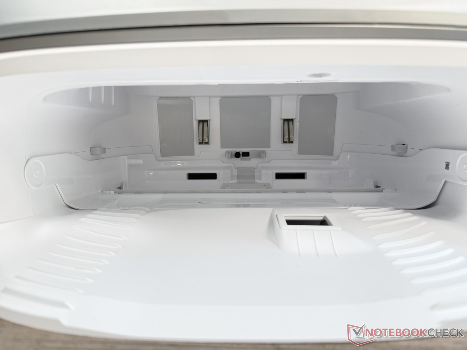 Положительным моментом является то, что лоток для чистки швабры является съемным. Боковые ручки для подъема округлой и стильно оформленной станции также практичны. Однако нам не очень понравилось, что на задней панели нет кабельной проводки для довольно короткого кабеля питания.