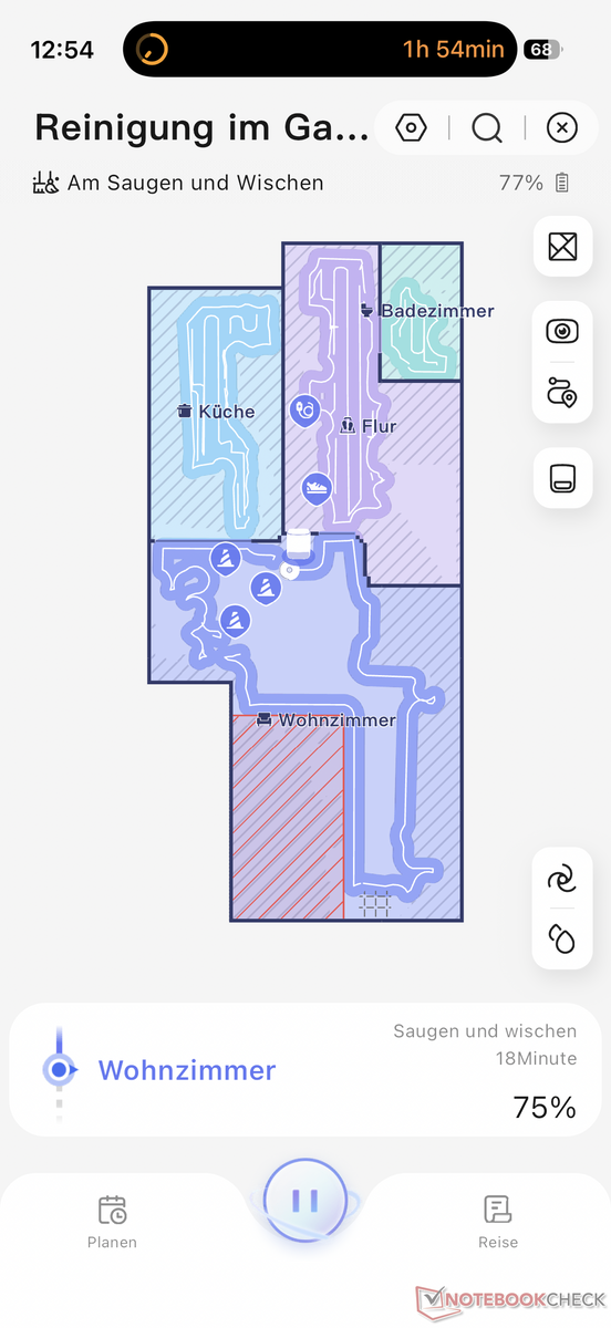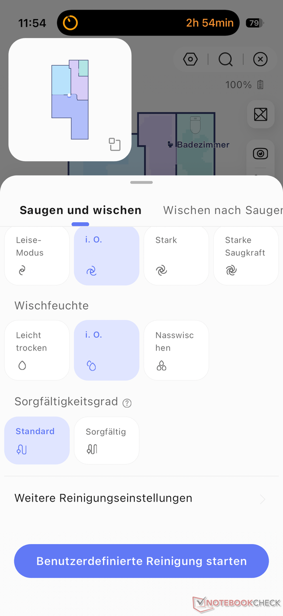 Кроме того, производительность уборки достойная, хотя, по нашим тестовым впечатлениям, она не дотягивает до флагманского уровня. Это, несомненно, относится и к обнаружению препятствий на нашем тестовом устройстве. Здесь еще есть куда стремиться, но это может быть улучшено в первую очередь программным обеспечением.