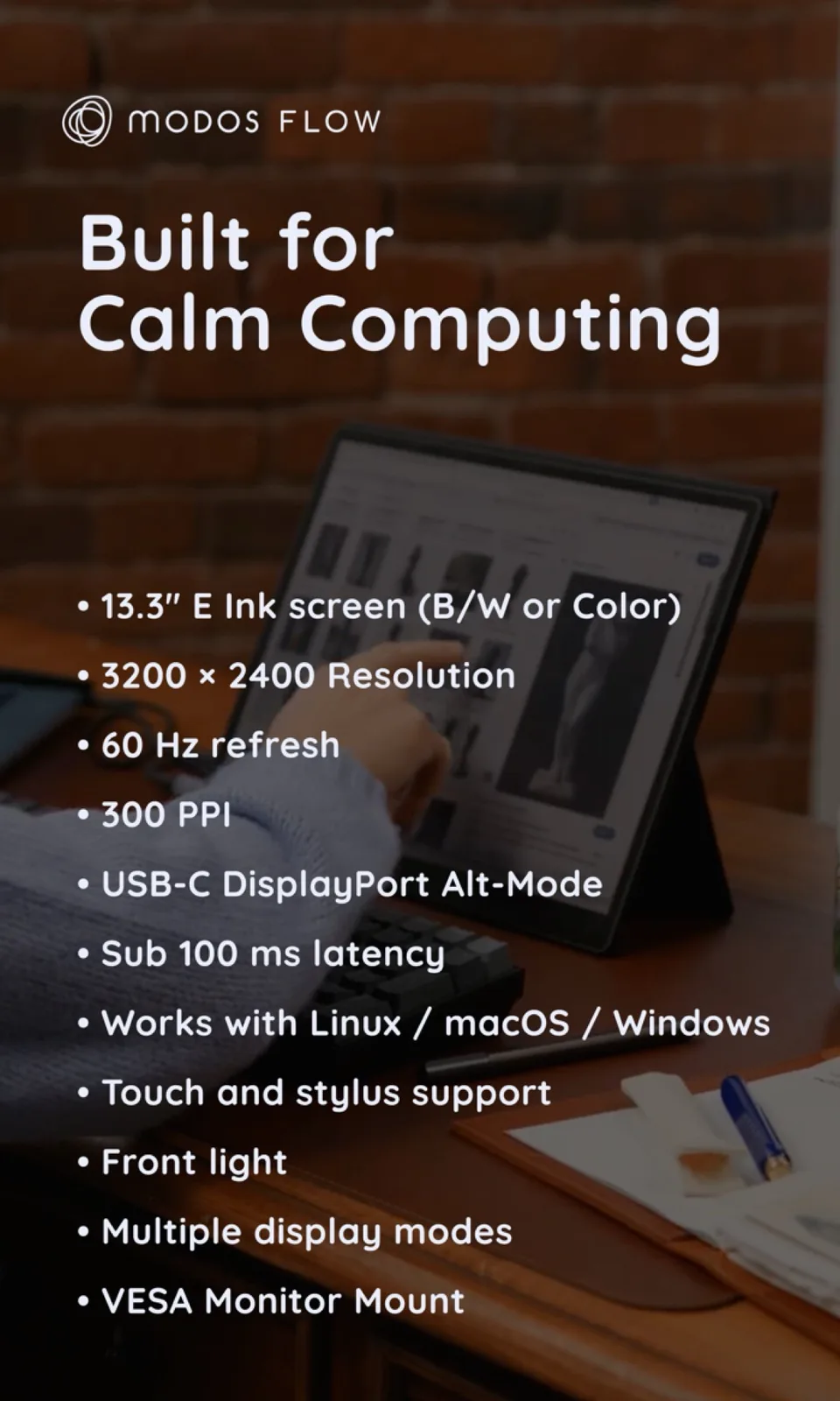 Сенсорный экран Modos Flow E Ink сочетает в себе разрешение 3,2K со стилусом и цветной дисплей с частотой 60 Гц
