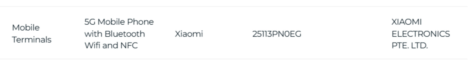 Теперь, судя по всему, глобальная версия Xiaomi 17 появилась в открытой базе данных Управления по развитию инфокоммуникаций (Infocomm Media Development Authority, IMDA) в Сингапуре. В частности, регуляторный орган сертифицировал модель '25113PN0EG', как показано на рисунке ниже. Исходя из номенклатуры номеров моделей Xiaomi, 25113PN0EG должен быть глобальной версией 25113PN0EC - номера модели, присвоенного китайской версии модели Xiaomi 17.
