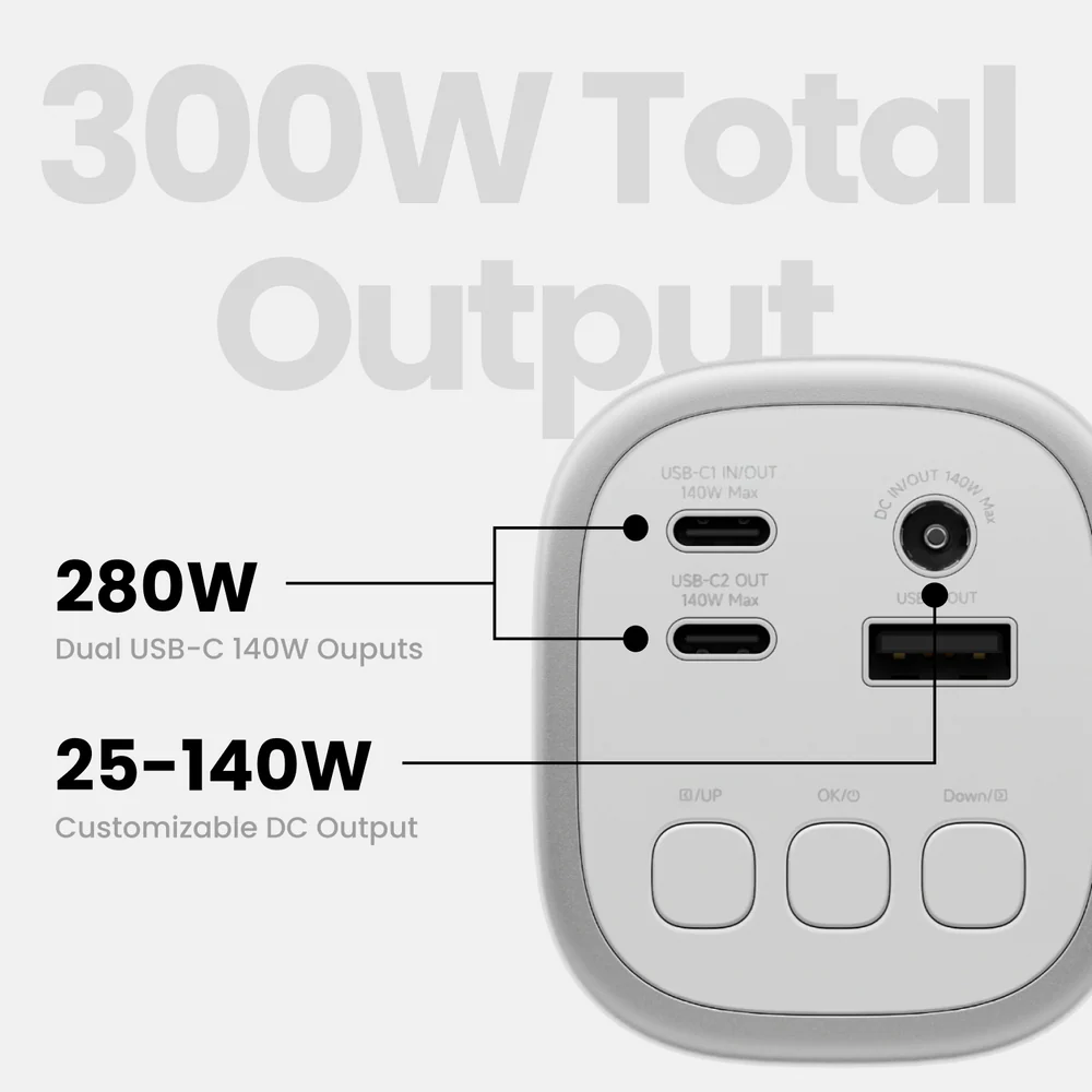 Новый блок питания Sharge Shargeek 300 получил свое название благодаря способности обеспечивать максимальную суммарную мощность в 300 Вт через четыре порта. Имеются два 140-ваттных порта USB-C, которые можно использовать для одновременной зарядки двух ноутбуков. Также есть порт USB-A и выход постоянного тока мощностью до 140 Вт. Кроме того, устройство поддерживает протокол быстрой зарядки PD 3.1.