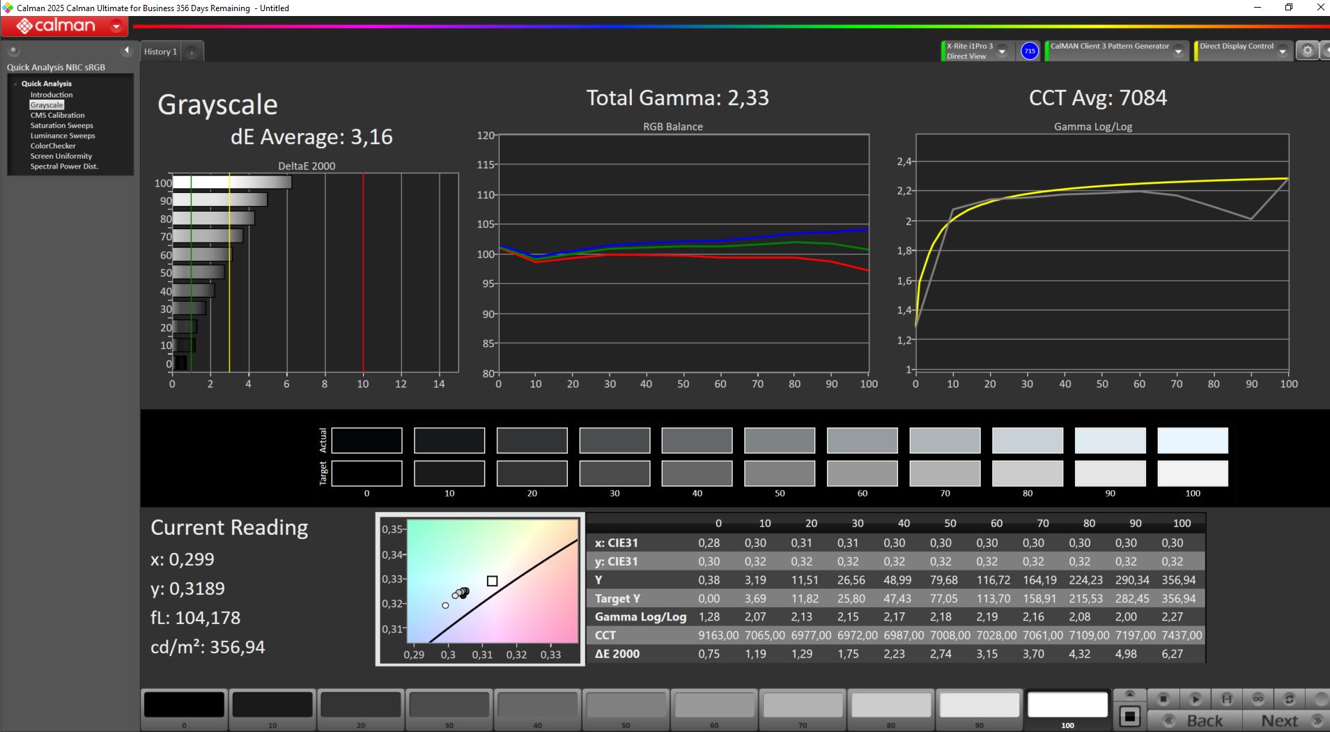 Яркость довольно средняя - 325 нит, что не особенно впечатляет. Точность цветопередачи в заводском состоянии также оставляет желать лучшего: средние отклонения DeltaE составляют 3,16 в шкале серого и 4,35 в тесте ColorChecker - значения, которые слишком высоки для серьезной работы с фото или видео.