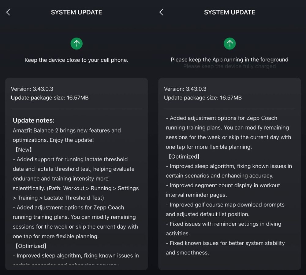 Обычно обновления выходят поэтапно для пользователей смарт-часов Amazfit Balance 2(по цене $249,99 на Amazon). Скорее всего, они уже начались в таких странах, как США, Канада и Китай, а европейское распространение ожидается в ближайшие дни. Когда прошивка будет доступна в Вашем регионе, Вы сможете загрузить ее через приложение Zepp.