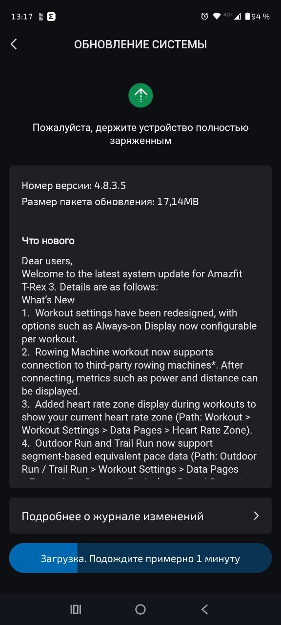 Прошивка версии 4.8.3.5 поэтапно распространяется среди пользователей смарт-часов Amazfit T-Rex 3(по цене от $277,99 на Amazon). Когда она будет доступна в Вашем регионе, Вы сможете установить программное обеспечение через приложение Zepp.