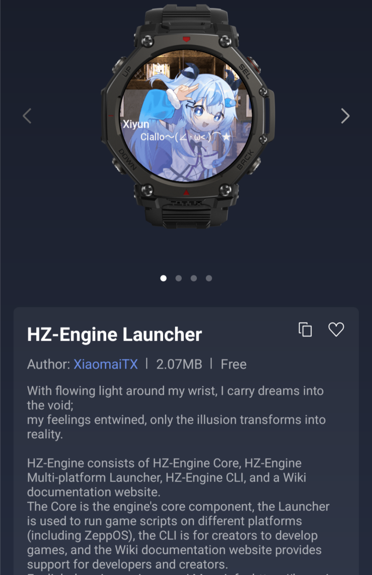 Самым популярным новым приложением, согласно чарту Zepp OS Weekly Top 50 Downloaded Apps, является HZ-Engine Launcher. С помощью этой программы можно запускать игровые скрипты для движка визуальных новелл на Zepp OS. Среди других популярных недавних дополнений - клиент Telegram tgwatch и CaferoChat, который описывается как "минималистичное приложение для чата на смарт-часах".