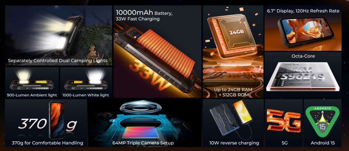 В любом случае, смартфон Oukitel оснащен аккумулятором емкостью 10 000 мАч, который можно заряжать током до 33 Вт. Он также поддерживает обратную зарядку мощностью 10 Вт, поэтому его можно использовать как пауэрбанк. Более того, WP58 Pro работает на SoC с восемью ядрами и поддержкой 5G, поэтому он не ограничен 4G LTE, как некоторые другие дешевые прочные смартфоны. Остальные технические характеристики включают 8 Гб ОЗУ, а объем накопителя 512 Гб также достаточно велик. Телефон работает на Android 15 из коробки, и пользователи могут расширить хранилище с помощью microSD, пожертвовав одним из слотов для двух SIM-карт.