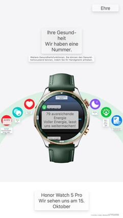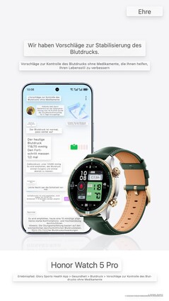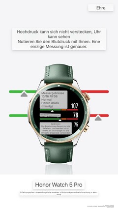 Новые тизерные изображения с сайта Honor показывают, что смарт-часы обеспечивают конкретные измерения, включая оценку того, слишком высокое или слишком низкое кровяное давление. Соответствующее приложение для смартфона предлагает советы о том, как повысить или понизить кровяное давление. Тем не менее, Honor, скорее всего, использует оптический PPG-датчик для определения кровяного давления, как и Samsung, поэтому пользователям следует рассматривать эти измерения как приблизительные.
