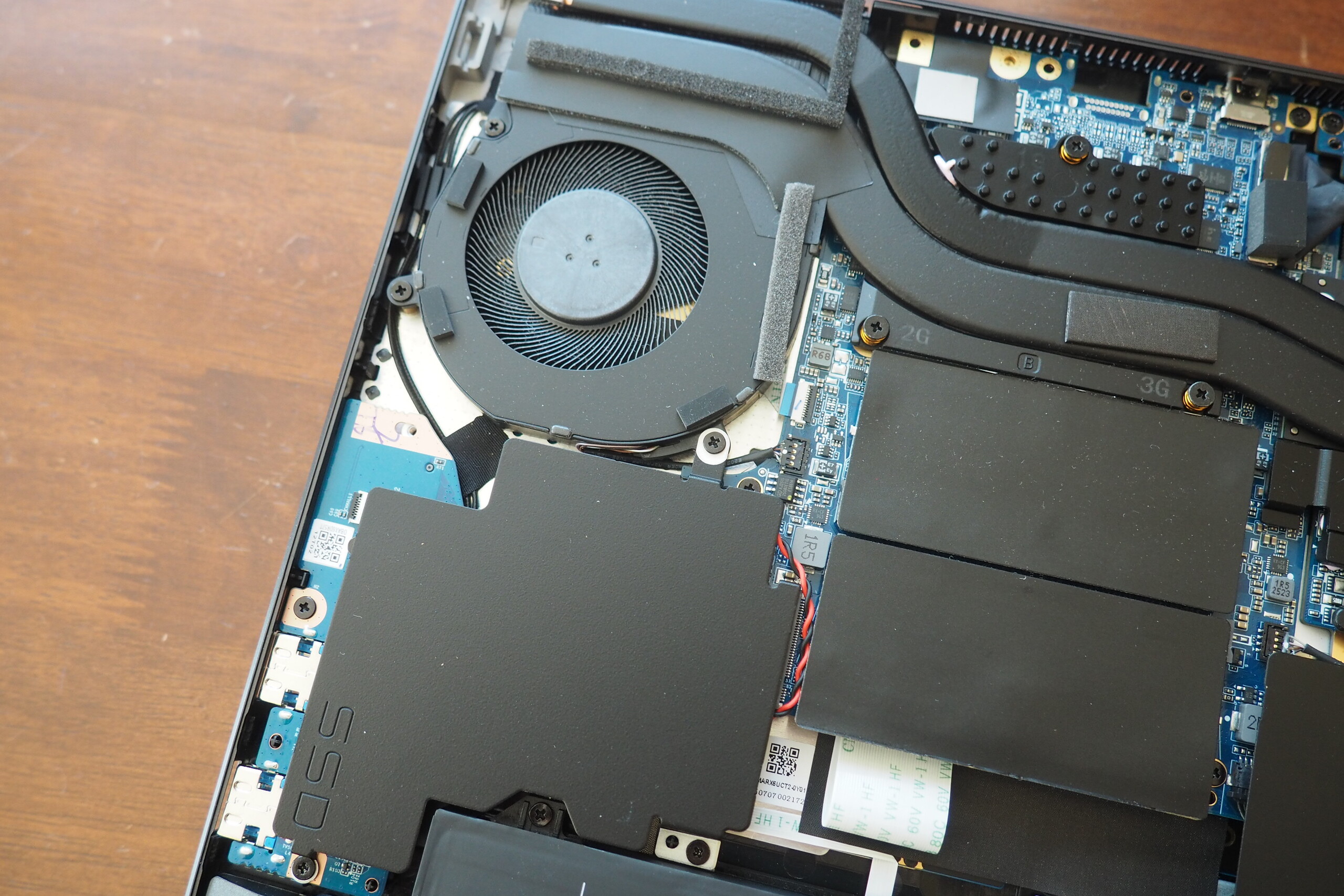 Модуль Wi-Fi от MediaTek обеспечивает приличную скорость загрузки и очень хорошую скорость скачивания. Далее находится веб-камера FHD, которая обеспечивает довольно четкое изображение по меркам ноутбуков и включает физический затвор конфиденциальности. Доступ к внутренним компонентам ноутбука прост после откручивания 10 винтов с крестообразной головкой; фотографии внутренних компонентов Вы найдете ниже.