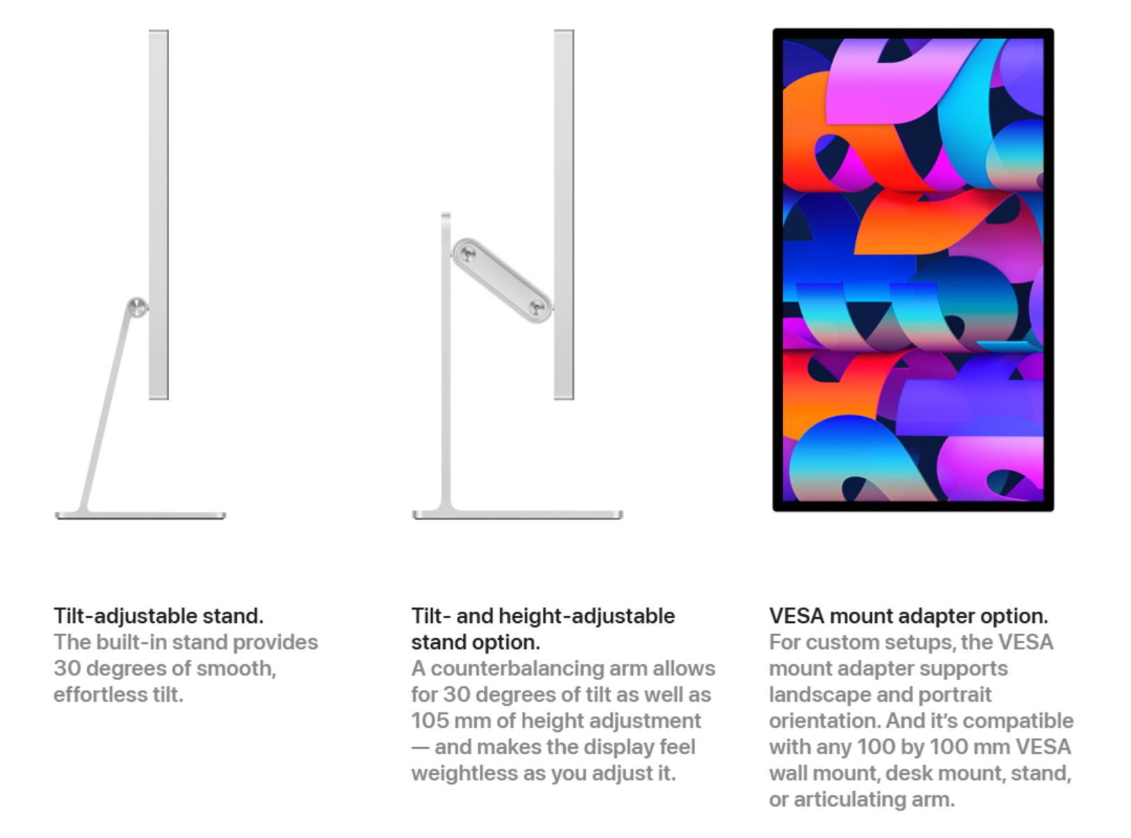 Новый Studio Display начинается от $1 599 со стандартным стеклом и подставкой с регулировкой наклона или адаптером для крепления VESA. Далее идет вариант с регулируемой по наклону и высоте подставкой, за которую Apple берет дополнительные $400. Между тем, варианты с нанотекстурным стеклом стоят не менее $1 899.
