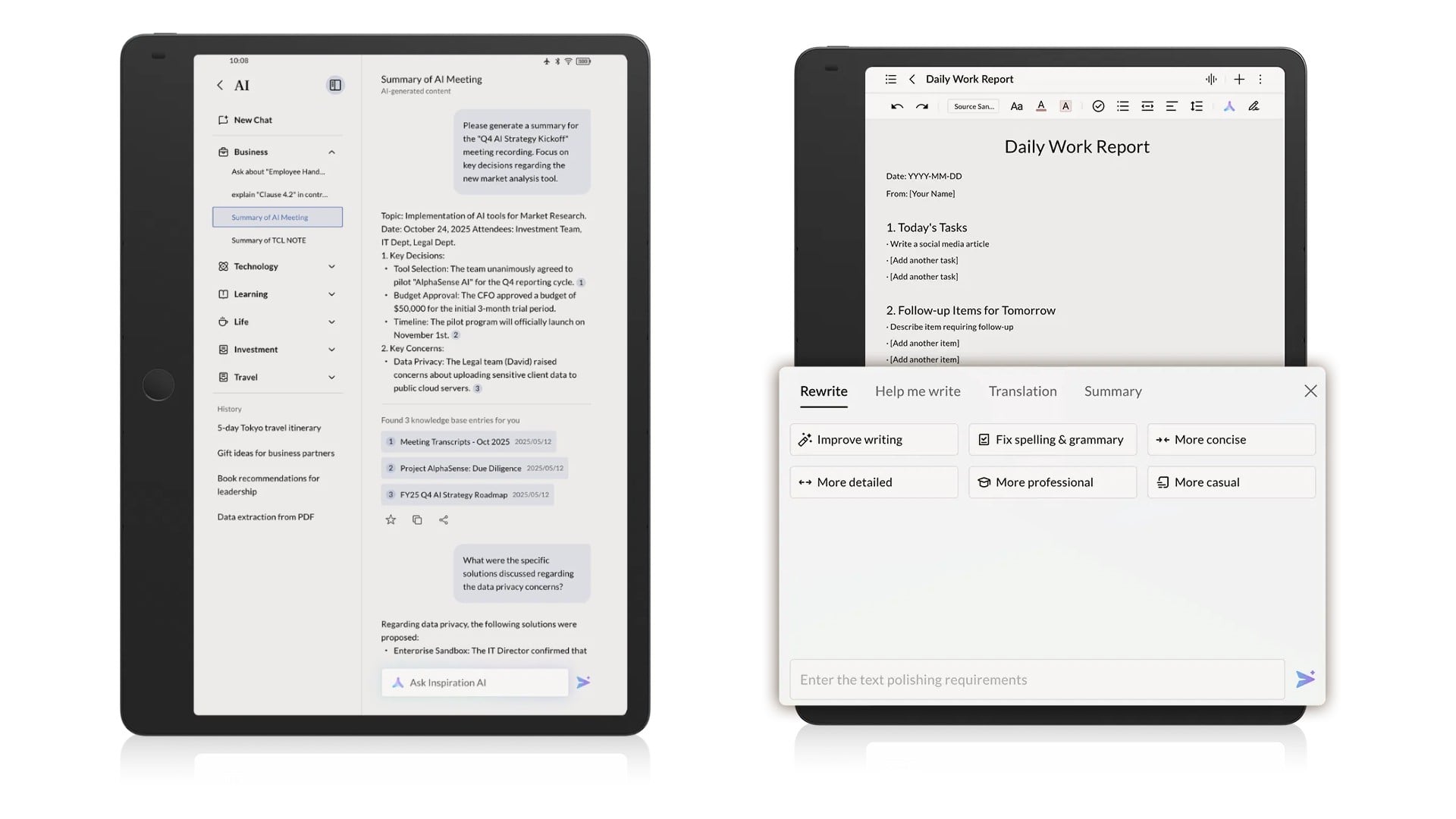 TCL утверждает, что Note A1 NxtPaper - это лучшая альтернатива устройствам с дисплеями E Ink, которые также обеспечивают ощущение бумаги, но страдают от задержек, призраков и недостаточной защиты глаз.
