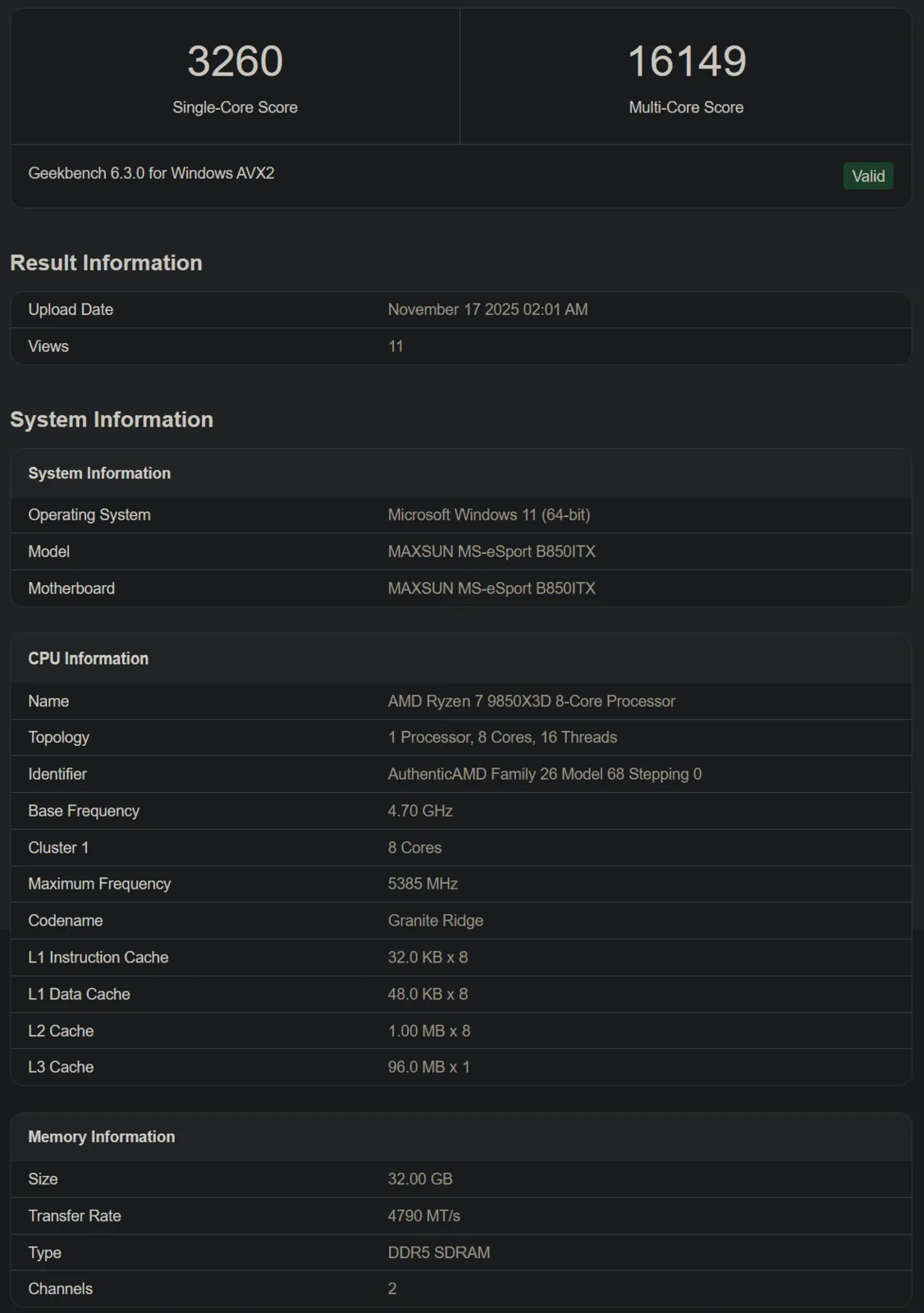 Новый листинг Geekbench подтвердил ключевые характеристики грядущего процессора AMD Ryzen 7 9850X3D. Как и ожидалось, он оснащен восемью ядрами процессора Zen 5 и шестнадцатью потоками. Однако его тактовая частота в двух листингах отличается.