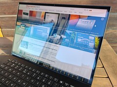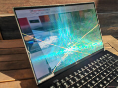 Acer использует 14,5-дюймовый сенсорный OLED-экран (2,880 x 1,800 пикселей, 16:10) с частотой 120 Гц от Samsung. Основные достоинства OLED (яркие цвета, высокая контрастность, быстрое время отклика) присутствуют, но сенсорный слой приводит к явному растровому эффекту, который значительно ухудшает субъективное качество изображения, особенно при ярком контенте. Мы попытались запечатлеть это на фотографии справа, но камера минимально усугубляет проблему. Также присутствует ШИМ-мерцание с частотой 240 Гц при любом уровне яркости. И яркость, и цветовая температура регулируются датчиком. Сенсорный экран очень отражает, что ограничивает его использование, особенно на открытом воздухе.