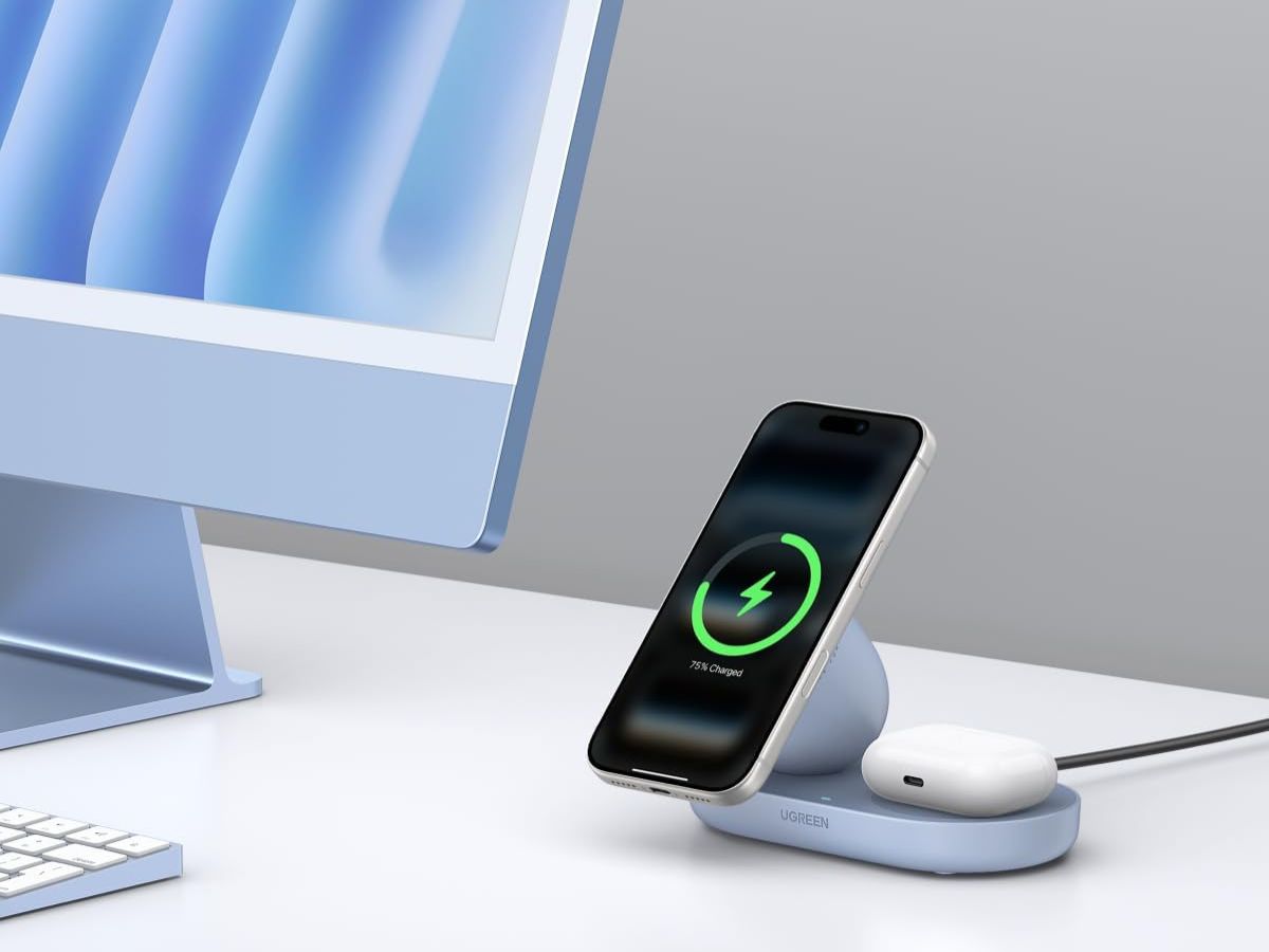 Компания Ugreen выпустила новую версию магнитного беспроводного зарядного устройства 2-в-1 15 Вт. Этот зарядный аксессуар впервые появился в черном цвете на Amazon в различных европейских странах в ноябре 2025 года.