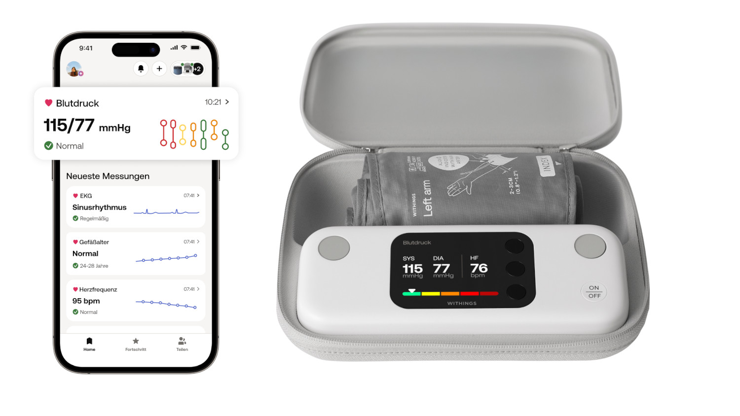Кроме того, в BPM Vision интегрирована Einkanal-EKG, которая в течение 30 секунд благодаря простому прикосновению пальцем к сенсорам, расположенным в области венчика, позволяет получать информацию о состоянии мерцания. Sämtliche Messergebnisse werden anschließend mit der Withings App, die für iOS und Android erhältlich ist, synchronisiert. Таким образом, Вы сможете долгое время наблюдать за своими собственными действиями и получать их от экспертов.