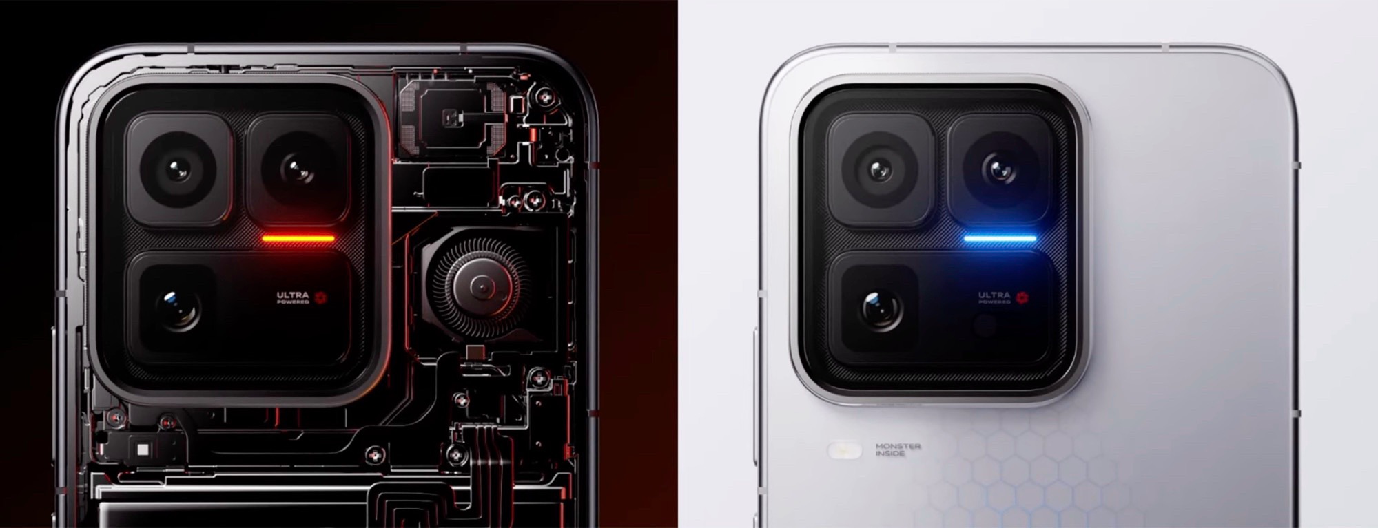 Дизайн модели Ultra очень похож на дизайн iQOO 15, но флагманский телефон в серии 15 теперь имеет поразительный узор в виде сот на задней панели, доступный в белом или черном цвете. Квадратный модуль камеры также оснащен цветной светодиодной полосой, которая может сигнализировать о входящих уведомлениях. Тем не менее, нам больше нравится Светодиодное кольцо на родственной модели значительно больше.