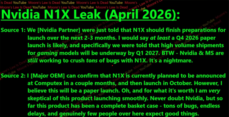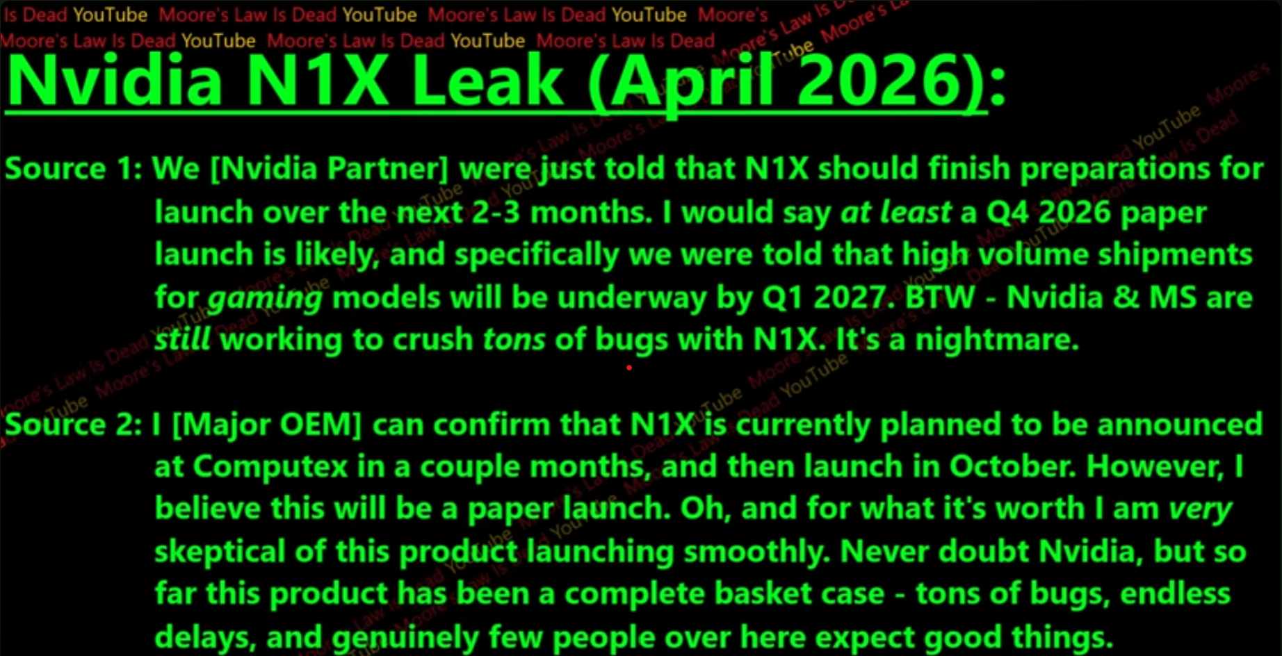 Утечка информации о Nvidia N1X указывает на ограниченную доступность в 2026 году