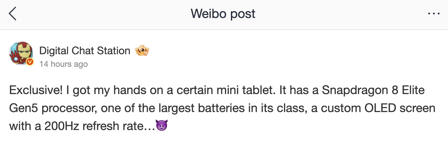 Согласно загадочному сообщению Digital Chat Station на Weibo, вполне вероятно, что грядущий RedMagic Gaming Tablet 5 Pro будет работать на базе Snapdragon 8 Elite Gen 5 флагманской SoC. Мощная SoC легко преодолевает барьер в 10 000 баллов в Geekbench и оснащена мощным iGPU Adreno 840 для превосходной игровой производительности.