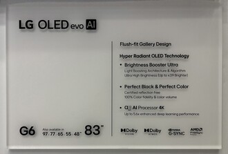 Неудивительно, что серия G придерживается галерейного дизайна, который позволяет устанавливать смарт-телевизор заподлицо со стеной. LG G6 OLED будет предлагаться с размерами экрана 48, 55, 65, 77, 83 и 97 дюймов. LG оснащает эти телевизоры новой тандемной OLED-панелью, которая будет продаваться как "Hyper Radiant" OLED-панель с "Brightness Booster Ultra". Эта технология, очевидно, делает телевизор в 3,9 раза ярче, чем более доступная модель LG B6 OLED, хотя в утечке маркетинговых материалов не приводится точных цифр или прямого сравнения с предшественником.