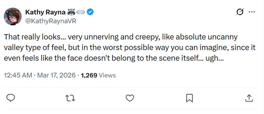 В Resident Evil Requiem, Digital Foundry показывает что DLSS 5 еще больше улучшает и без того великолепный рендеринг персонажей от Capcom. Однако полученные различия настолько разительны, что Грейс, главная героиня RE Requiem, выглядит почти как другой человек. Такие же изменения в игре наблюдаются и в Starfield, где персонажи выглядят почти фотореалистично. Однако эти изменения в визуализации персонажей, похоже, имеют тот же эффект "вульгарной долины", что и все, что создано искусственным интеллектом.