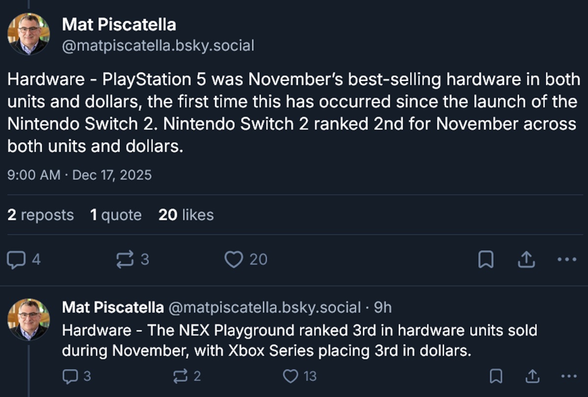 Сайт Switch 2 стал успешным nintendo превзошла все ожидания по розничным продажам. Тем не менее, игровые системы Sony демонстрируют устойчивость, после того как продажи PS5 возглавили хит-парад Circana в ноябре. Данные по США показывают, что консоль PlayStation впервые с момента выхода своего портативного конкурента заняла первое место.