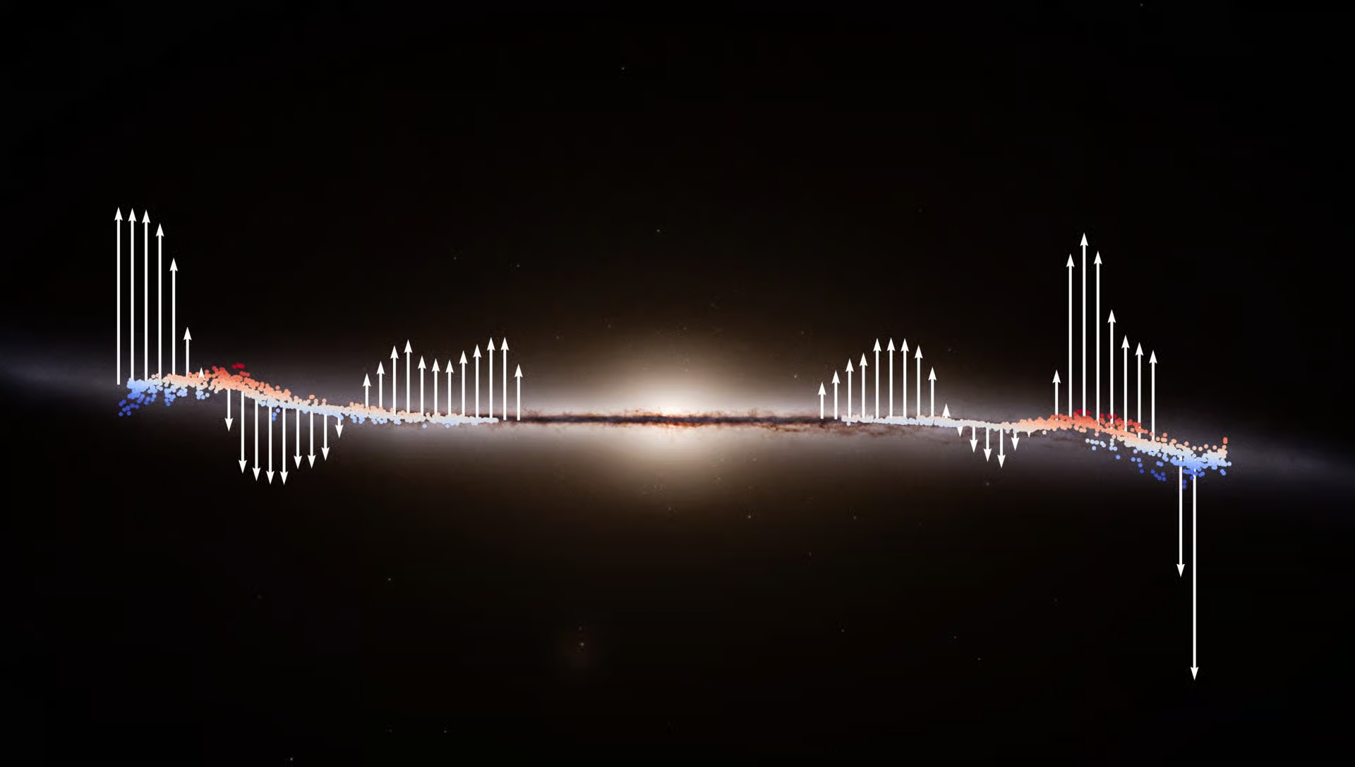 Это явление было описано в исследовании, опубликованном в журнале Astronomy and Astrophysics. Если говорить точнее, то оно выглядит как гигантская волна, распространяющаяся по всей галактике галактикеи изменяет движение расположенных там звезд.