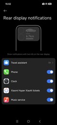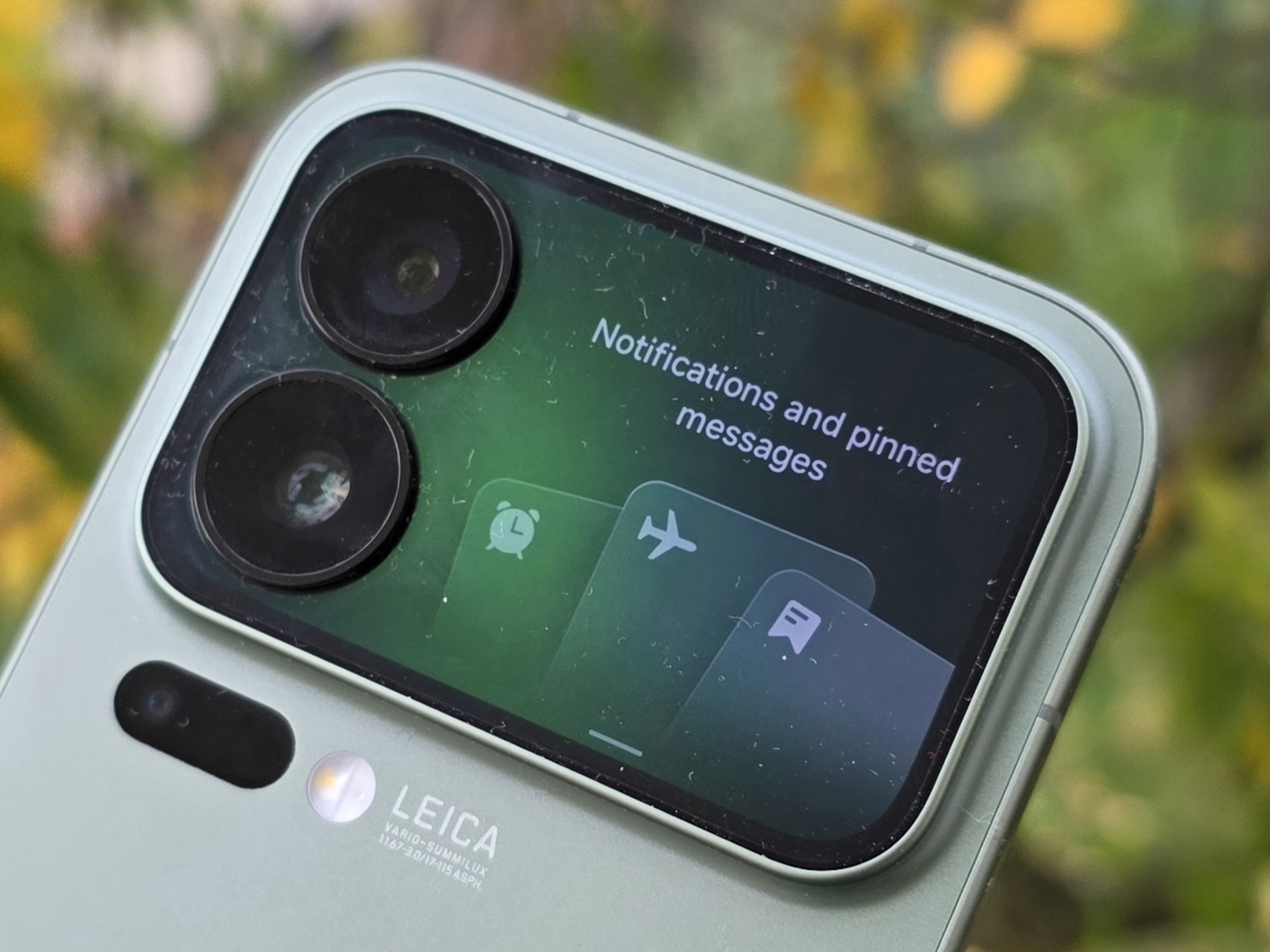 Задняя OLED-панель очень легко читается благодаря высокой яркости и четкости дисплея. Помимо отображения времени и приема звонков, пользователи могут пролистывать экран вниз для просмотра сообщений и управления отдельными приложениями, например, музыкальным приложением Xiaomi. Однако здесь нельзя установить приложения сторонних разработчиков, что ограничивает его повседневную полезность. Остается только возможность использовать камеры Leica на задней панели для видео и селфи.