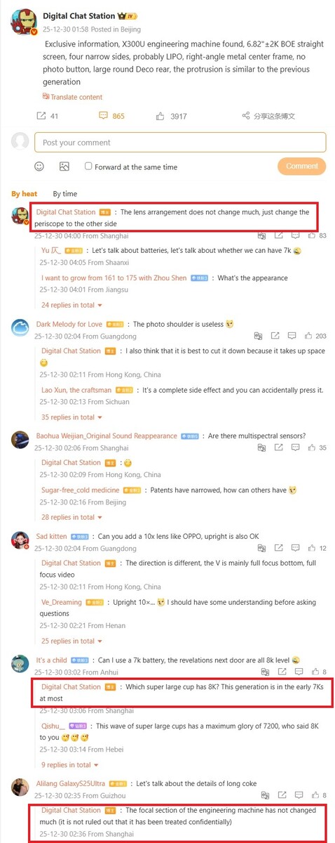 В дополнение к этим хорошим новостям из баз данных EEC, очень надежный источник утечек Digital Chat Station также предоставил несколько дополнительных спецификаций Vivo X300 Ultra. Как мы сообщали ранееон оснащен плоским 6,82-дюймовым OLED-дисплеем от BOE с тонкими рамками и плоскими краями металлической рамки, но, судя по всему, в нем больше нет выделенной кнопки спуска затвора камеры. Для некоторых пользователей это, несомненно, будет существенным ухудшением по сравнению с Vivo X200 Ultra. Возможно, Vivo берет пример с Xiaomi, так как в Xiaomi 17 Ultra Leica Edition нет кнопки спуска затвора, поскольку Xiaomi хочет продавать дополнительные аксессуары.
