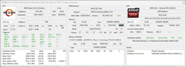 | Asus ROG Xbox Ally X Ryzen Z2 Extreme, Radeon 890M, Samsung MZVMA1T0HCLD, IPS, 1920x1080, 7" | GPD Pocket 4 Ryzen AI 9 HX 370, Radeon 890M, , IPS, 2560x1600, 8.8" | Zotac ZGC-G1A1W-01 R7 8840U, Radeon 780M, Phison PS5021-E21 512GB, OLED, 1920x1080, 7" | MSI Claw 8 AI+ Core Ultra 7 258V, Arc 140V, Kioxia BG6 KBG60ZNS1T02, IPS, 1920x1200, 8" | Asus ROG Ally X Z1 Extreme, Radeon 780M, WD PC SN560 SDDPNQE-1T00, IPS, 1920x1080, 7" | Усредн. модель с AMD Radeon 890M | Усредн. модель класса Handheld / UMPC | |