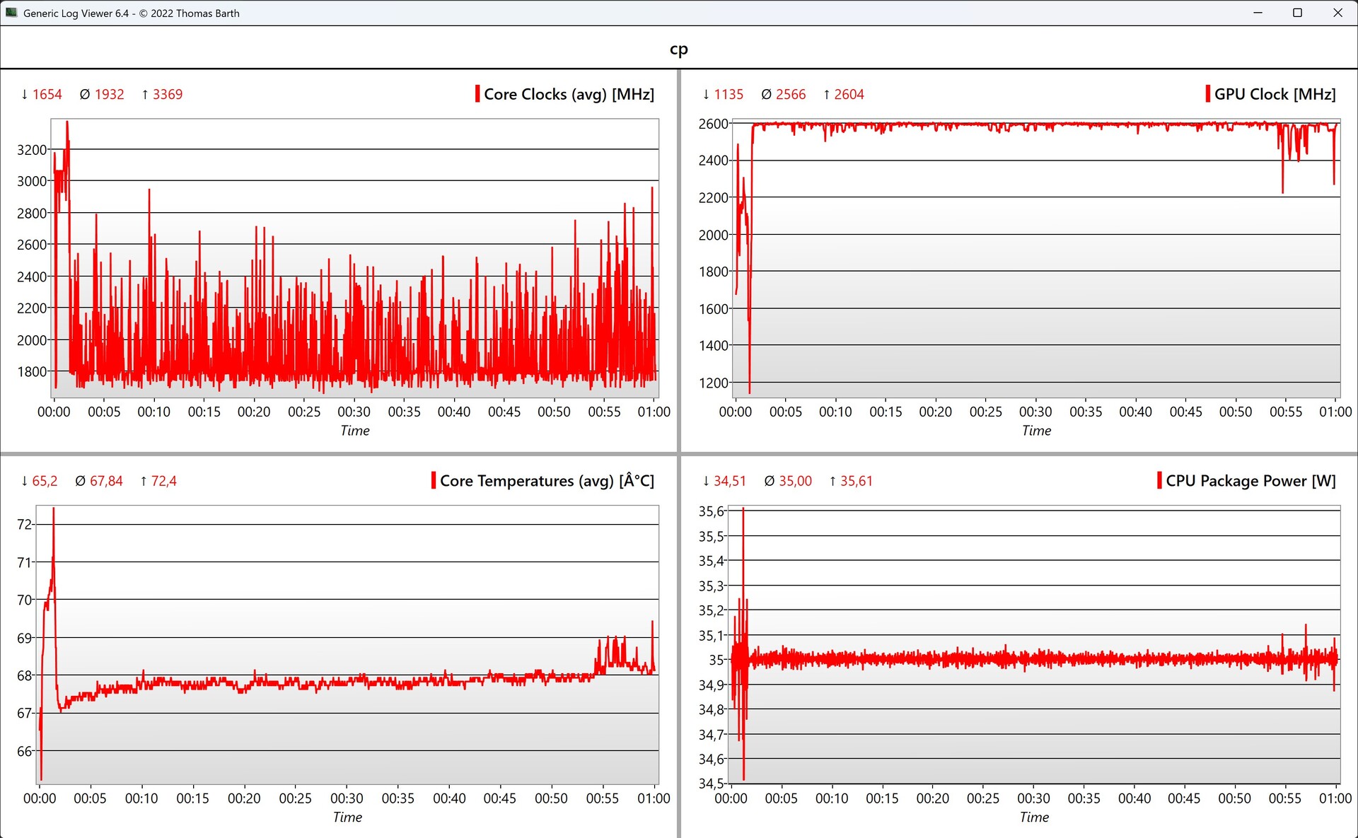 Потребление энергии в режиме ожидания немного снизилось по сравнению со старым Ally X. Мы измеряем до 66 Вт под нагрузкой в течение некоторого времени, но это значение быстро выравнивается до 55 Вт. Таким образом, 65-ваттный адаптер питания вполне достаточен.