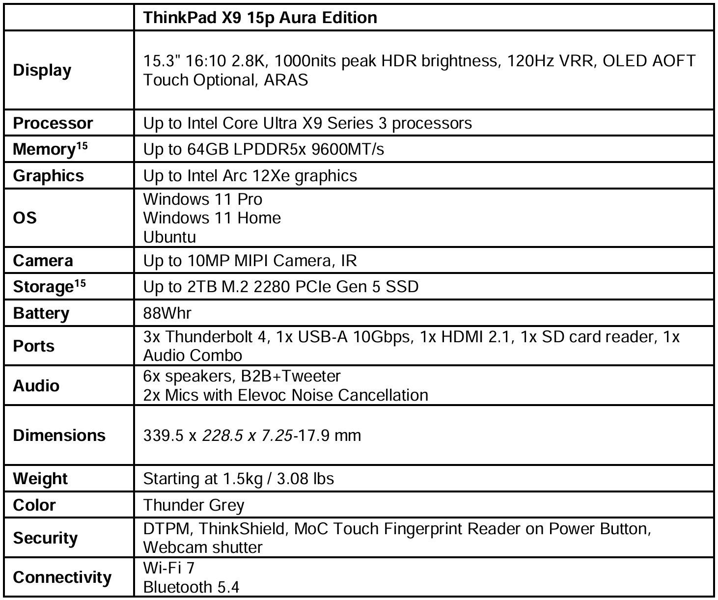 Lenovo ThinkPad X9-15p Aura Edition: Цены и доступность